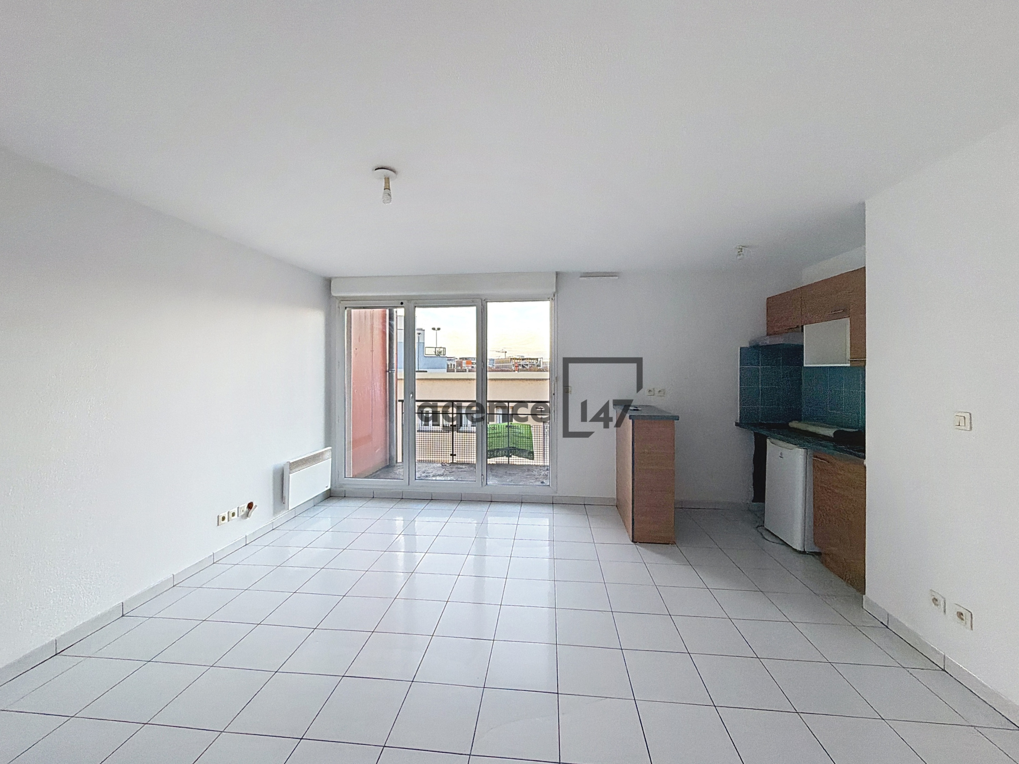 Une entrée avec rangements, coin cuisine ,salon séjour sur le grand balcon de 7m2 avec vue dégagée.