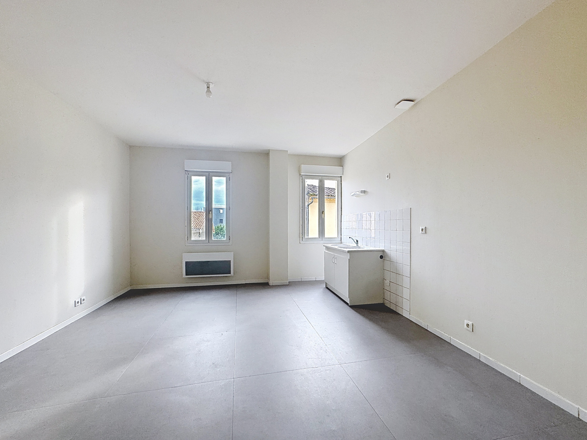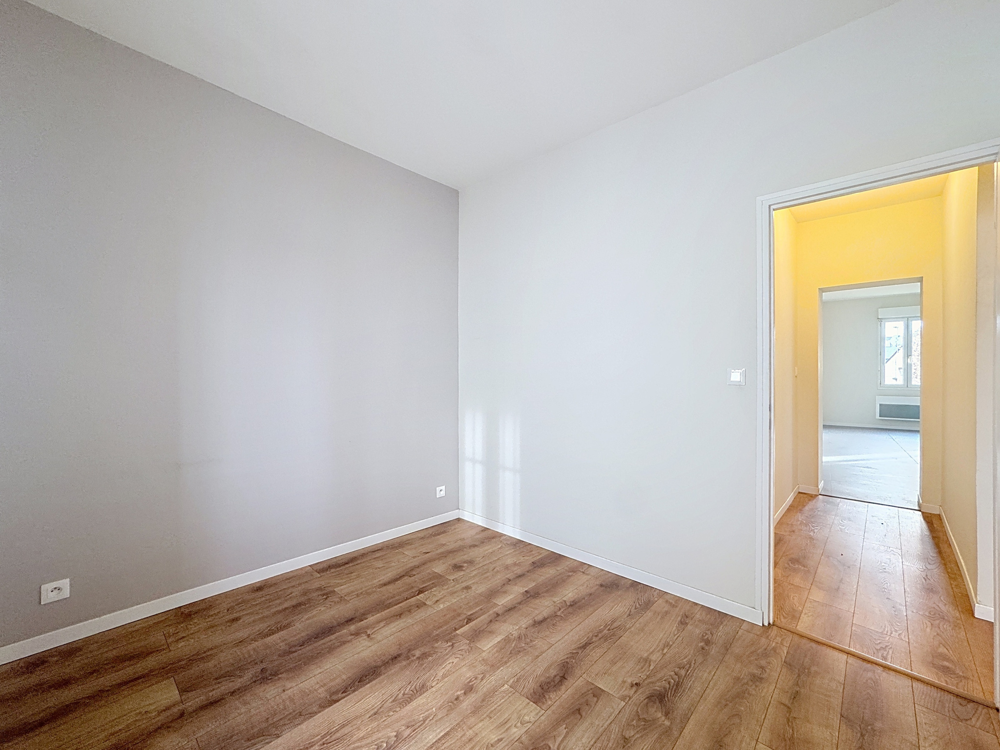 Il se compose d'une entrée avec couloir, d'un séjour lumineux avec coin cuisine, d'une chambre, d'un bureau (idéal télétravail ou chambre d'appoint), ainsi que d'une salle de bains avec WC. Le logement est équipé d'un chauffage électrique.