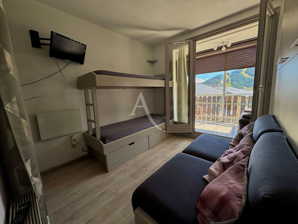 Situé dans une résidence idéalement placée face à un arrêt navette et à proximité immédiate des commerces, cet appartement T2 de 26.25 m² est en réalité la réunion de deux logements, offrant une belle surface et une configuration idéale pour accueillir famille et amis. Dès l'entrée, un hall dessert l'ensemble des pièces. Vous trouverez tout d'abord une première salle d'eau avec WC, puis une chambre confortable dotée d'une loggia avec vue directe sur les pistes. Cette chambre dispose d'un placard astucieusement aménagé en lit escamotable, optimisant l'espace. Le séjour, lumineux, s'ouvre lui aussi sur une loggia qui comprend un coin repas avec la même vue imprenable sur les montagnes. Une cuisine équipée et fonctionnelle complète l'espace de vie, avec de nombreux rangements. Enfin, une seconde salle d'eau avec WC apporte un vrai plus en termes de confort, surtout pour les séjours à plusieurs. Cet appartement est idéal pour profiter pleinement de la station été comme hiver. Les + : Vue dégagée sur les pistes Deux loggias Deux salles d'eau avec WC Cuisine équipée et rangements Navette gratuite au pied de la résidence Commerces accessibles à pied Deux casiers à ski Copropriété de 108 lots (Pas de procédure en cours). Charges annuelles : 1296.28 euros.Numéro de mandat : 3256