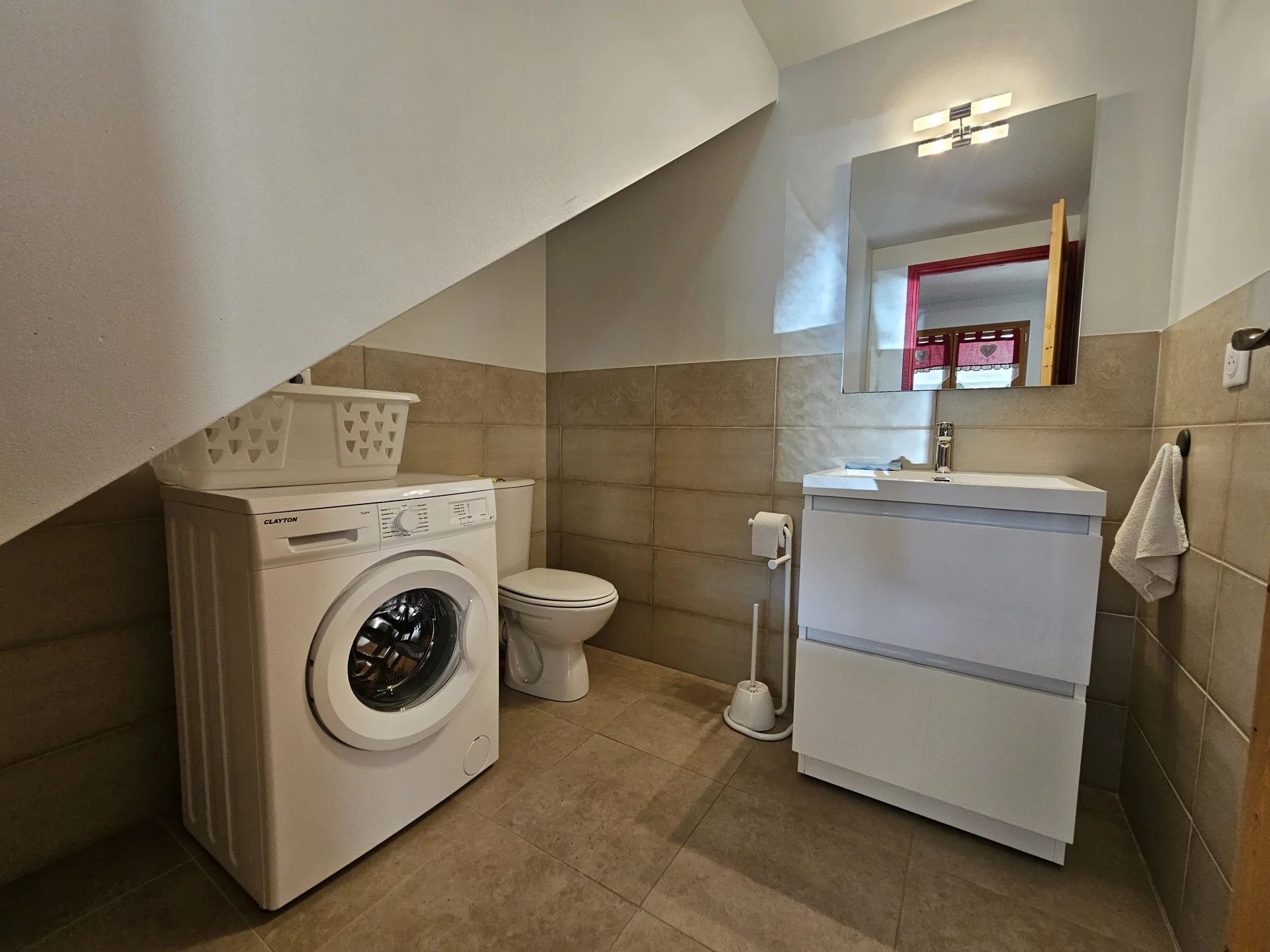 Situé dans une petite copropriété de 4 lots, au cur d'un environnement naturel calme et recherché, cet appartement construit en 2012 offre des espaces fonctionnels, lumineux et parfaitement entretenus.En rez-de-chaussée : Entrée avec placards intégrés, WC séparé avec lave-mains et espace buanderie