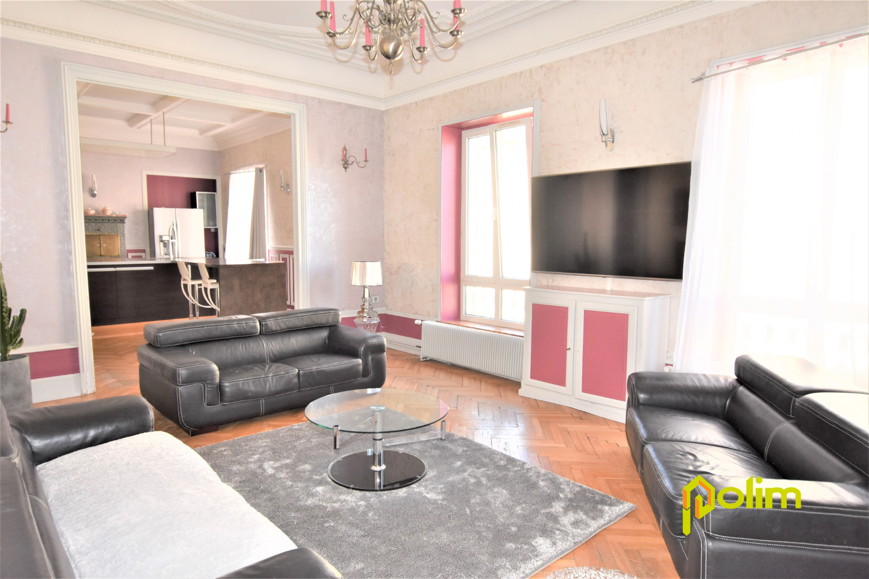 Au premier étage, appartement de caractère T4 comprenant : cuisine équipée ouverte sur salon/séjour de 56m2, 2 chambres de 21m2 chacune, belle salle de bains moderne, WC. Belles prestations, moulures sous plafond. A découvrir rapidement !!!