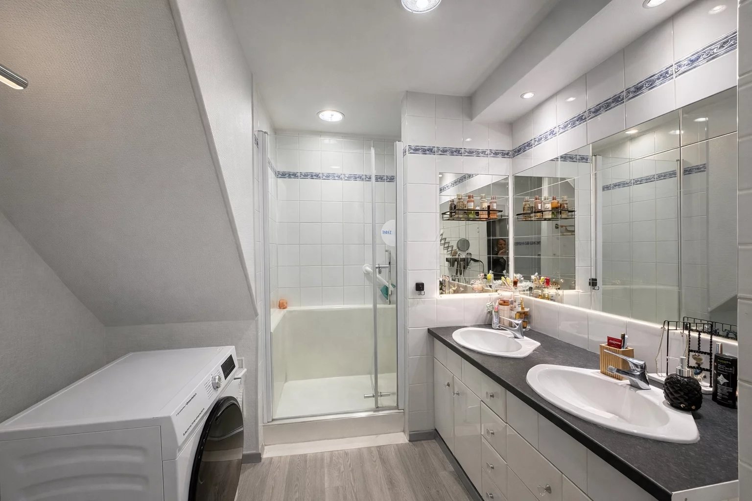 L'espace nuit se compose de deux chambres confortables, d'un dressing et d'une salle d'eau très fonctionnelle.