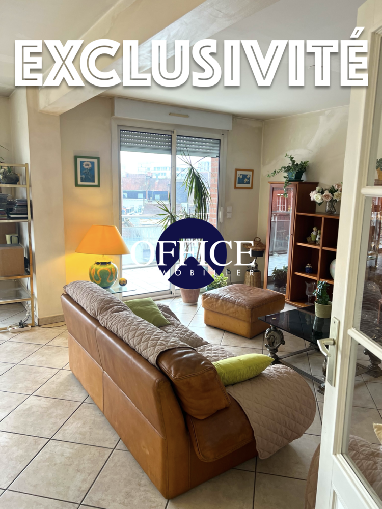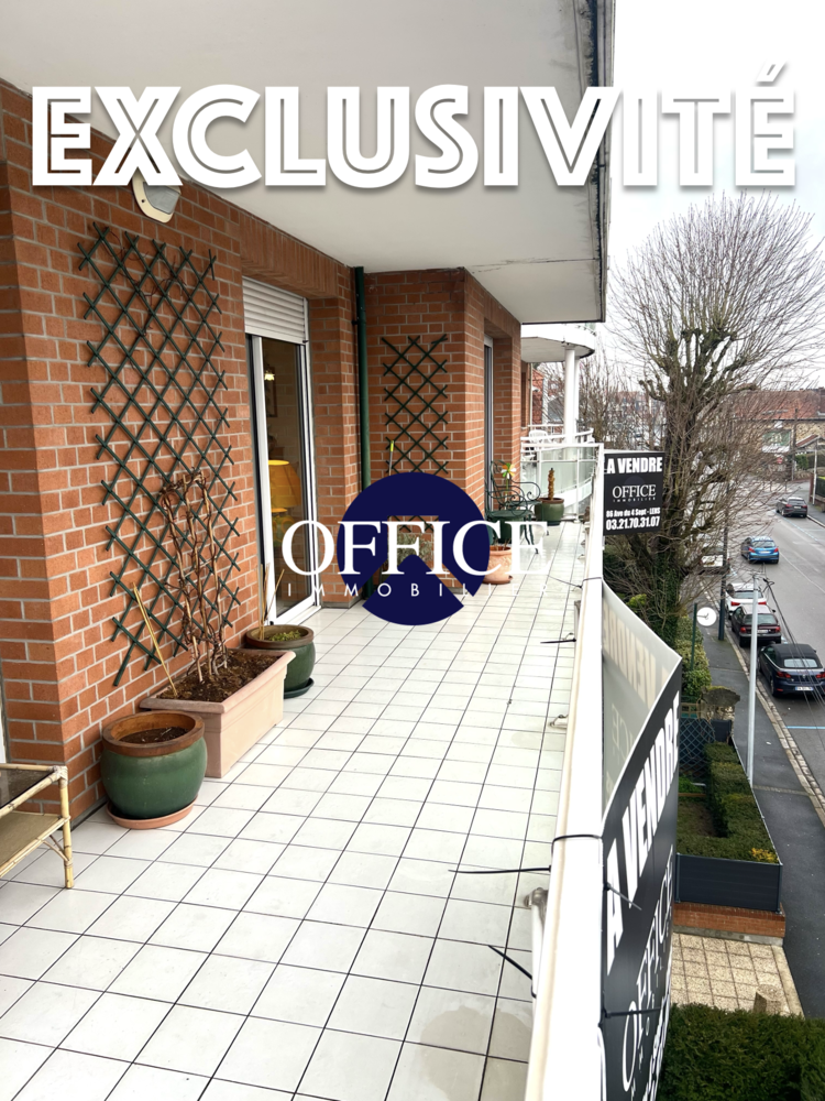 Situé en plein cœur de Lens, au sein d'une résidence de haut standing, l'Office Immobilier vous propose en exclusivité ce superbe appartement traversant d'environ 120 m² habitables, offrant des prestations rares sur le secteur.Au 3ᵉ étage, bénéficiant d'une exposition plein sud, ce bien lumineux se compose d'un vaste hall d'entrée avec de nombreux rangements, desservant un magnifique salon/séjour baigné de lumière grâce à de larges baies vitrées, ouvrant sur une spacieuse terrasse, idéale pour profiter des beaux jours. La cuisine entièrement équipée, moderne et fonctionnelle, complète harmonieusement l'espace de vie.