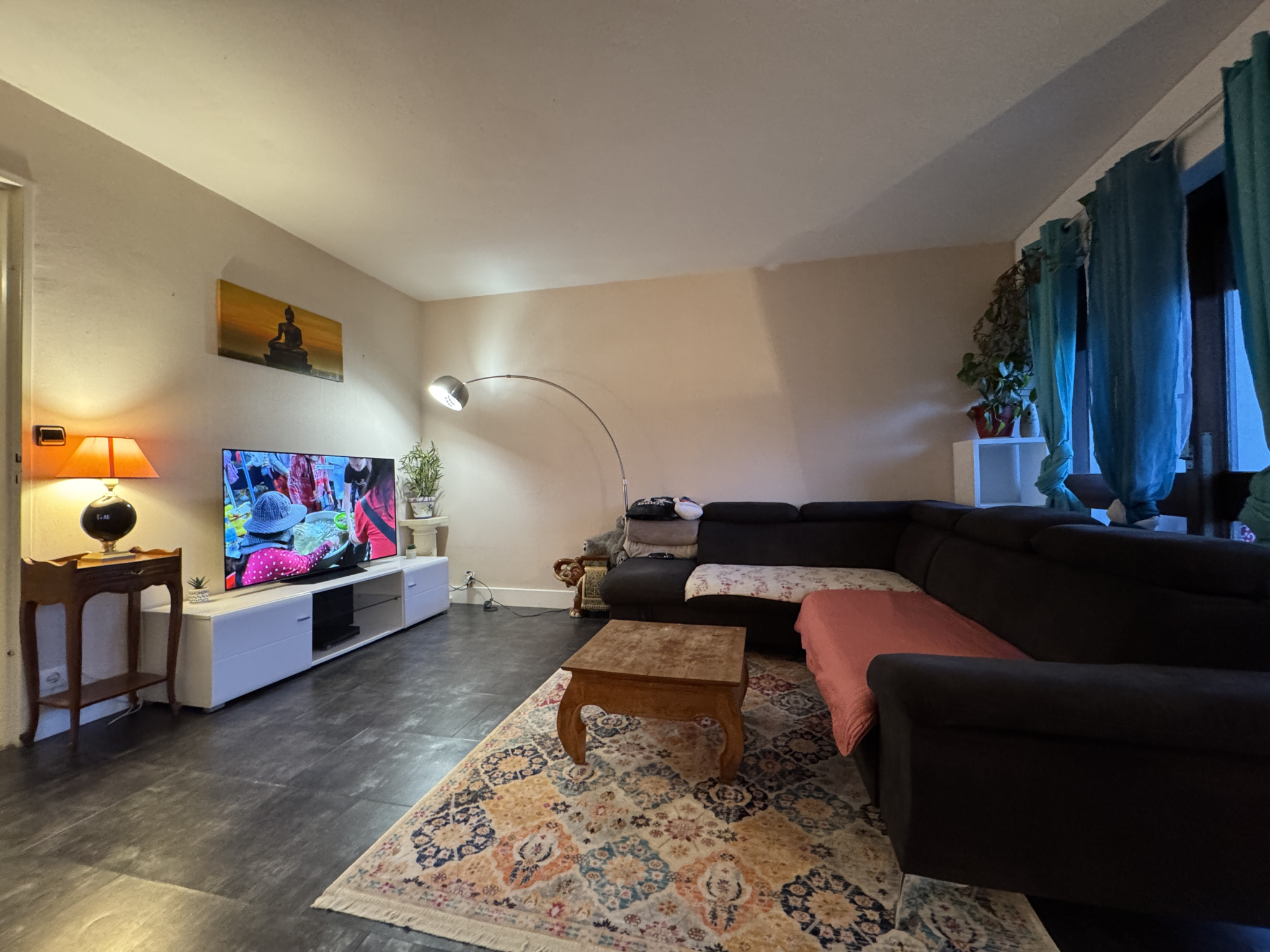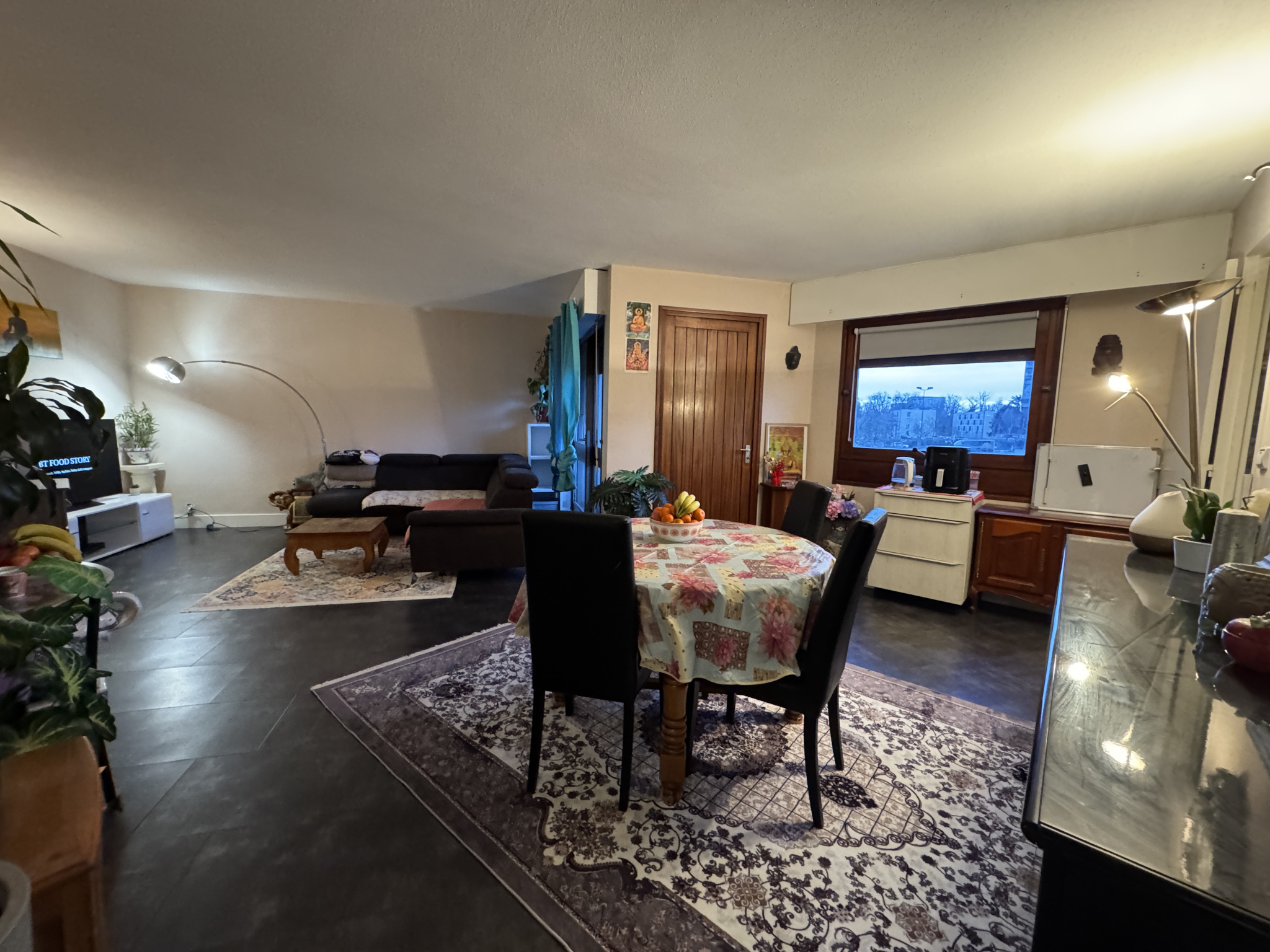 Grand salon-séjour lumineux avec accès à un second balcon