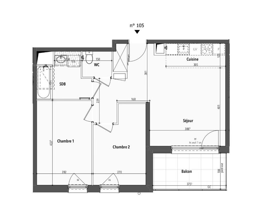 au coeur de la ville de ST Louis appartement F3 de 57.51m2 avec une terrasse privatif de 6.86m2 comprenant DEUX chambres a coucher de 12.22m2 , 9.91une cuisine de 3.81m2 ouverte sur un séjours de 24.30m2 avec acces au balcon 6.86m2 . une salle de bain de 5.21m2 avec wc separé proche de la frontière suisse et des commerces . le prix comprends une place de parking , livraison 30 09 2027 . pour des infos complémentaires lot 105Année de construction : 0