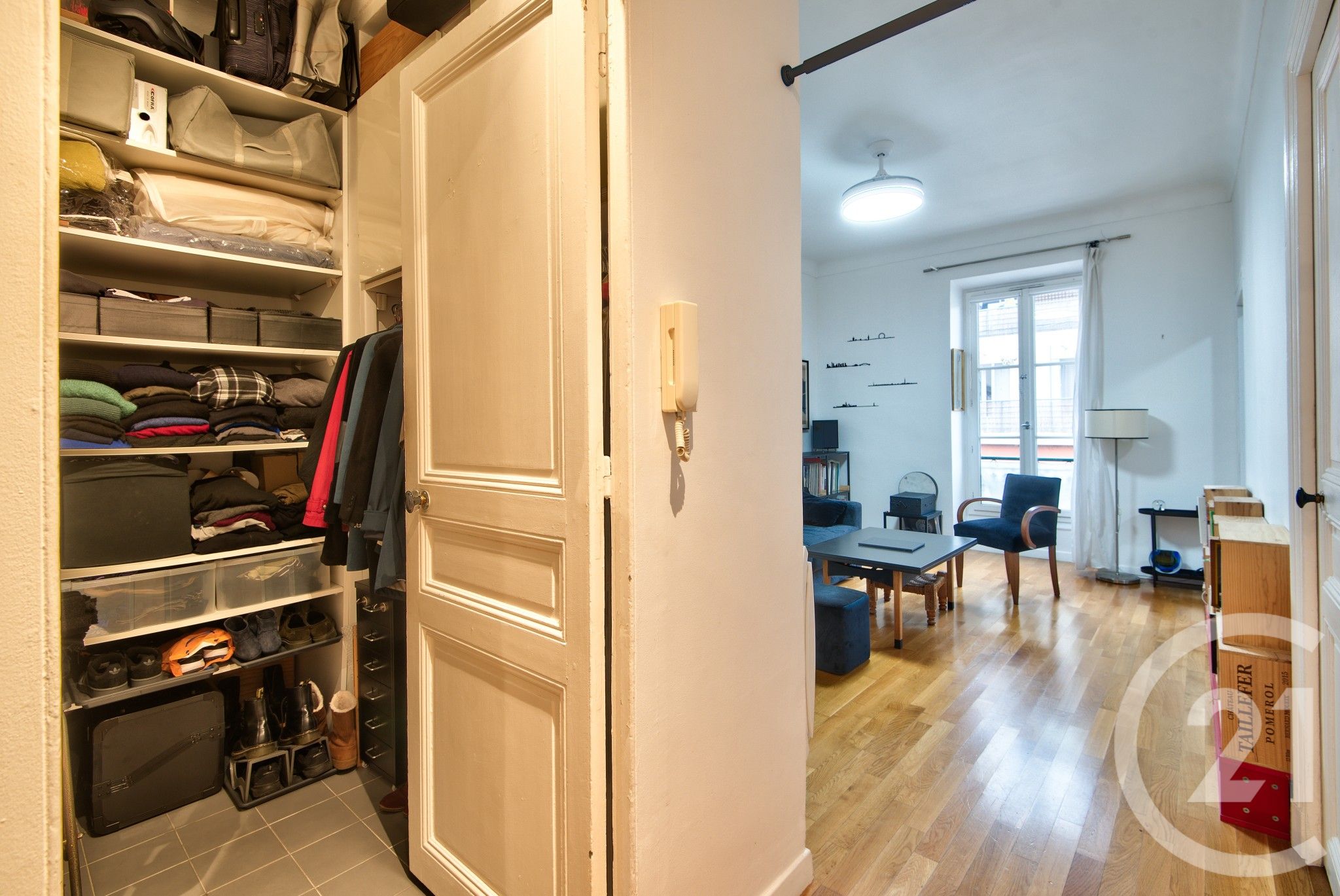 Lumineux et en très bon état, l'appartement offre un séjour ouvrant sur un balcon avec vue dégagée sur l'église Notre-Dame du Port.