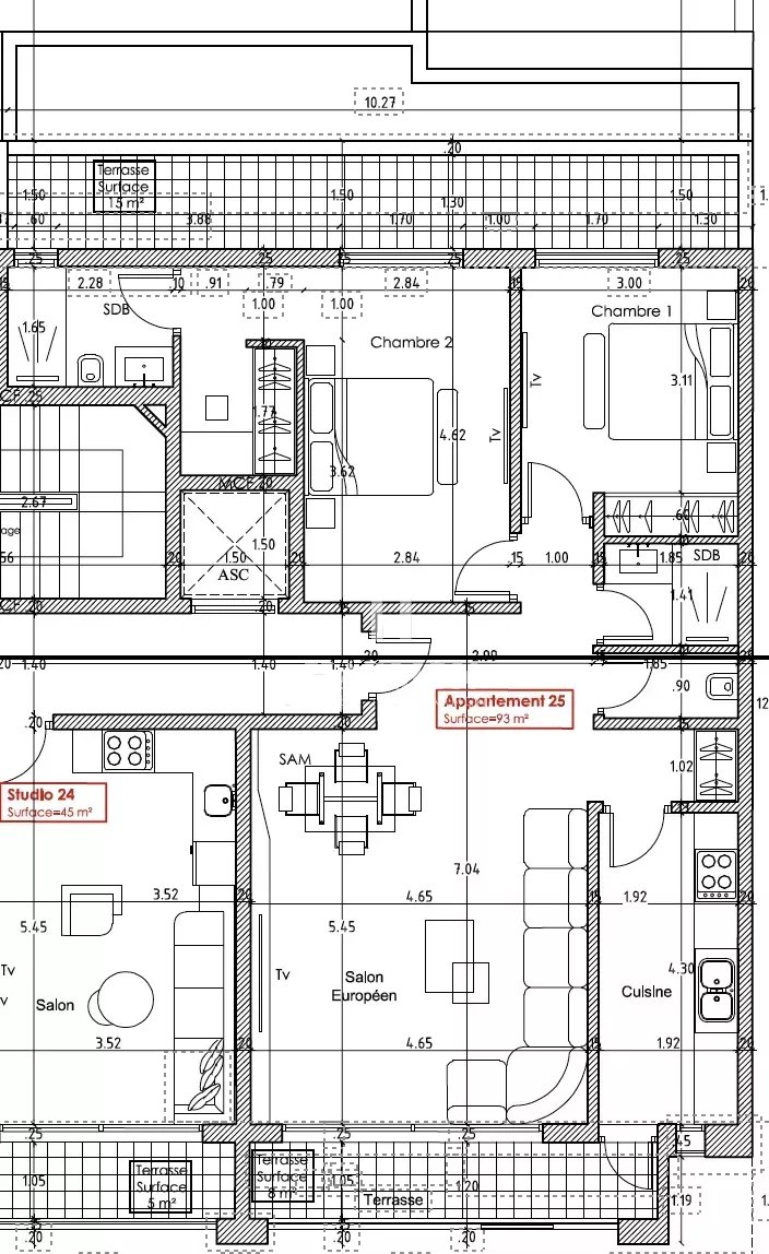 Cet appartement T3 se compose de :