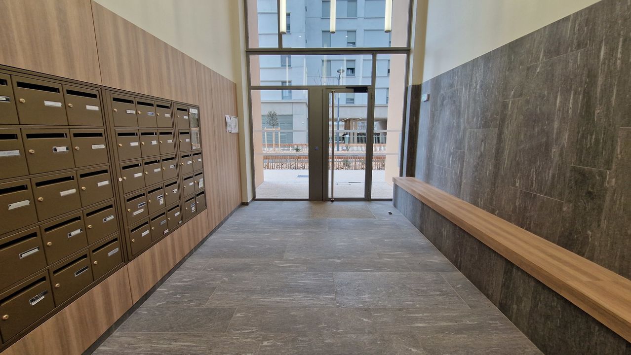 Prestations de qualité : visiophone, fenêtres en double vitrage, volets roulants électriques, chauffage collectif connecté au réseau urbain, et pré-équipement pour bornes électriques dans les stationnements.