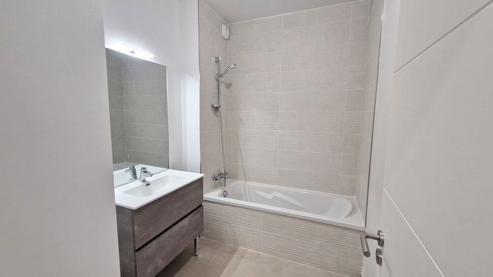 La salle de bains est équipée d'une baignoire et d'un WC suspendu séparé.