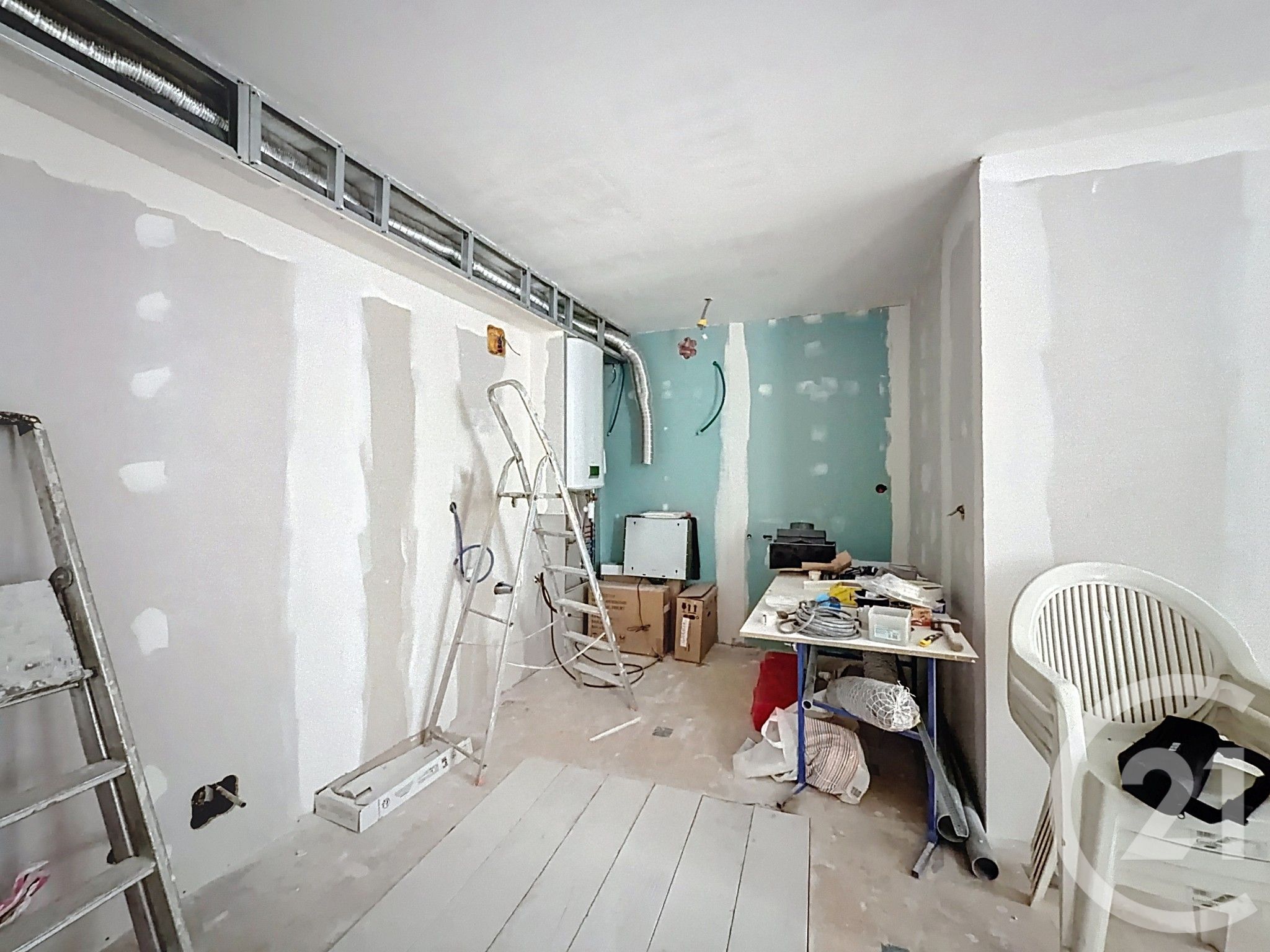 Il reste à terminer la rénovation (aménagements intérieurs, finitions, équipements, etc.) afin d'obtenir un logement prêt à être habité ou loué.