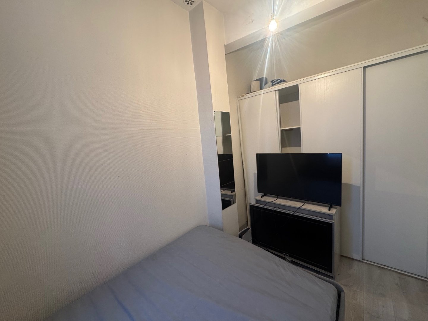 La chambre séparée, dotée d'un grand placard intégré, permet de profiter d'un véritable espace nuit confortable et fonctionnel.