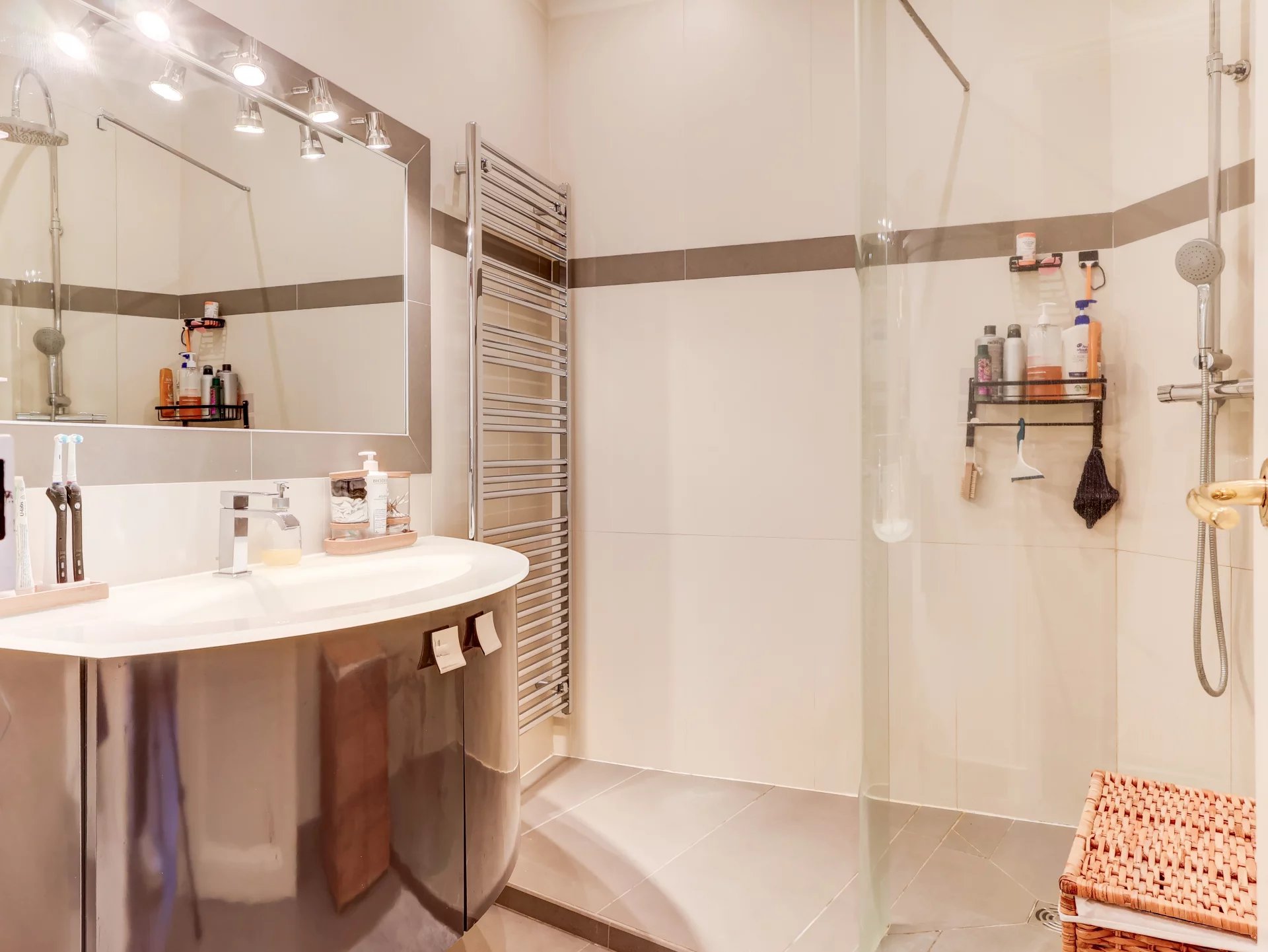 L'appartement bénéficie également de la climatisation réversible et de la fibre optique.