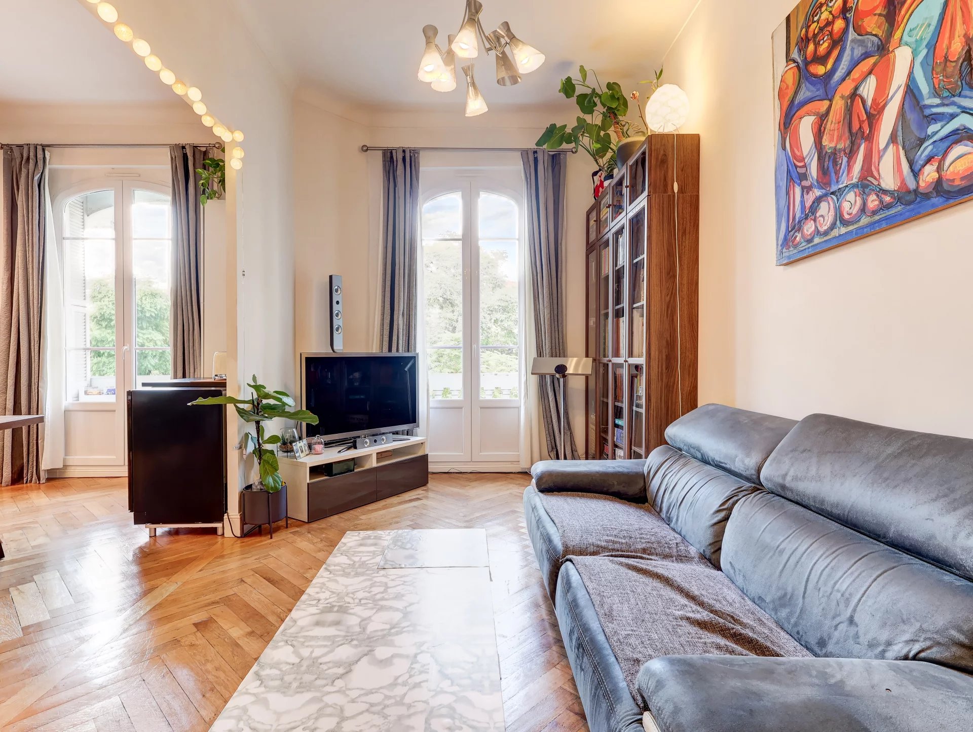 Un atout rare en centre-ville : aucun vis-à-vis, l'appartement donnant directement sur le parc Mozart.
