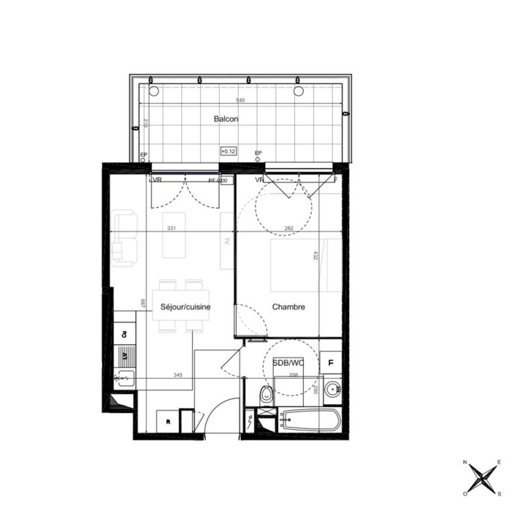 Côté nuit, une chambre confortable de 12,2 m2 s'ouvre également sur le balcon, permettant de profiter de la luminosité et du panorama dès le réveil. Une salle de bain fonctionnelle, équipée d'une baignoire et d'un wc, complète l'ensemble. Le chauffage est individuel électrique et l'eau chaude collective par chaudière à gaz, pour plus de confort au quotidien.