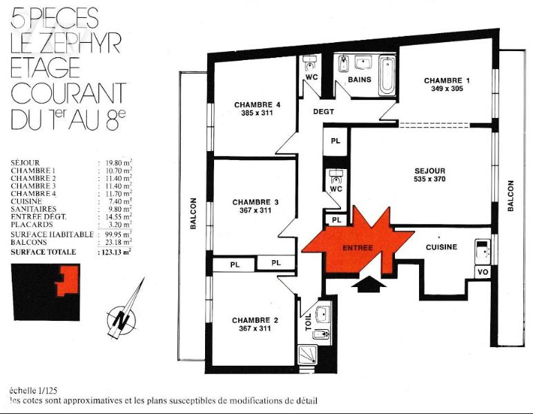 Il se compose de : Une vaste entrée avec placards, Une cuisine aménagée et équipée, Un double séjour lumineux ouvrant sur balcon, Un couloir desservant trois chambres, chacune avec accès balcon, Deux WC séparés, Une salle de bains et une salle d'eau, De nombreux espaces de rangement.