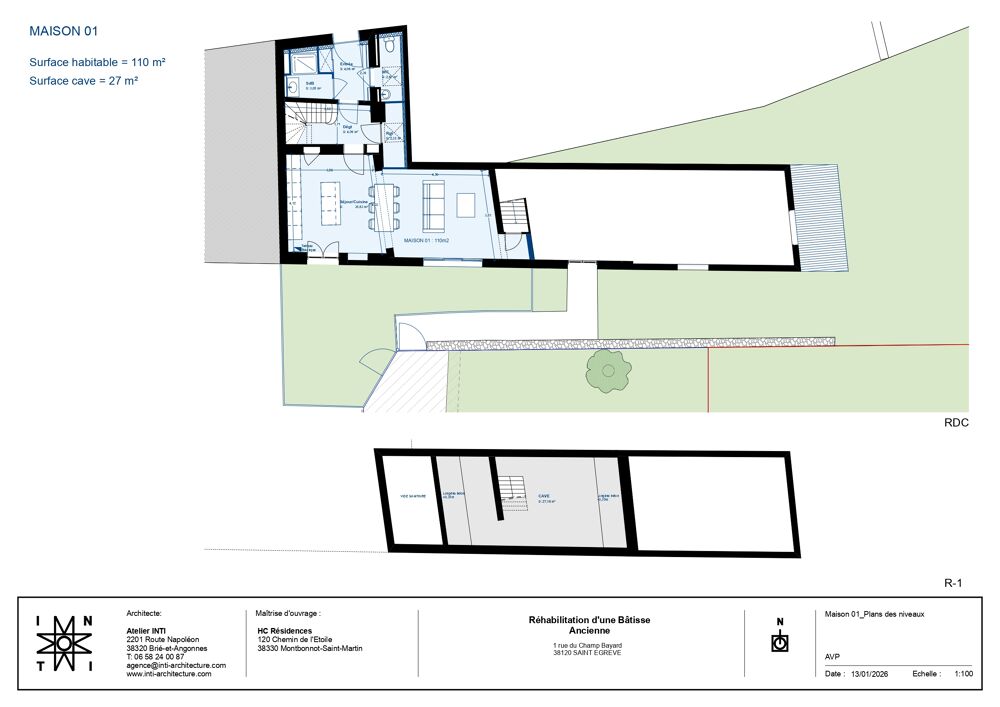 NOUVEAUTÉ 1PRO'IMMOSt-Égrève, 1 rue Champ Bayard, dans un secteur très calme, suite à une division en cours d'une maison en deux logements, venez découvrir cet appartement type 4 à potentiel de 110 m² nécessitant des travaux.
