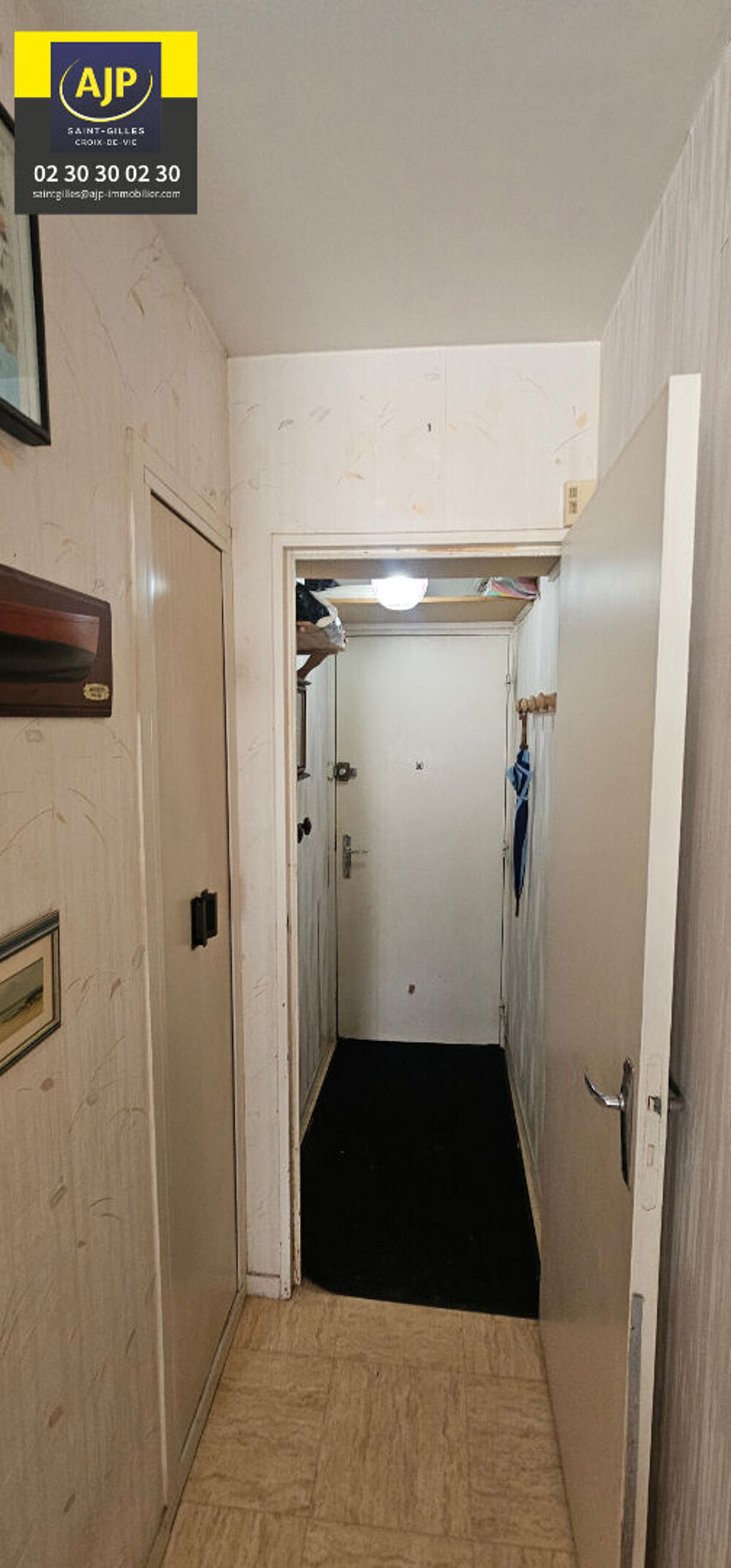 En exclusivité Appartement Vue Mer au 8ème Étage Situé dans une copropriété dont le ravalement de façade vient d'être réalisé, garantissant un immeuble impeccable à l'heure d'aujourd'hui, découvrez cet appartement à fort potentiel bénéficiant d'une vue mer. Ce bien, actuellement "dans son jus", offre une configuration idéale pour une remise en état complète selon vos goûts. Un espace cuisine avec placard , une salle d'eau et une entrée fonctionnelle donnant sur l' espace de vie : Une pièce à vivre complétée par un dégagement de 1,21 m². Espace nuit : Une chambre Un balcon fermé d véritable atout pour admirer le panorama. Annexes et Stationnement Cave : Une cave privative est jointe à cet appartement pour tout besoin de stockage. Option Parking : Possibilité d'acquérir, en complément, une place de parking aérienne. Notez que cette place est vendue indépendamment mais est contractuellement non dissociable de l'appartement. Pour toute information complémentaire ou pour organiser une visite de ce bien, merci de nous contacter AJP immobilier SAINT GILLES CROIX DE VIE Copropriété de 478 lots - dont 261 lots habitation. (Pas de procédure en cours). Charges annuelles : 833.85 euros.Année de construction : 1978