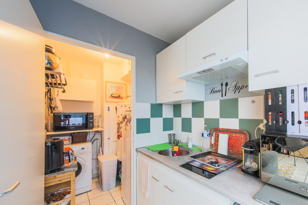 La cuisine est aménagée et fonctionnelle, et la salle de bains est bien agencée pour le confort des occupants.