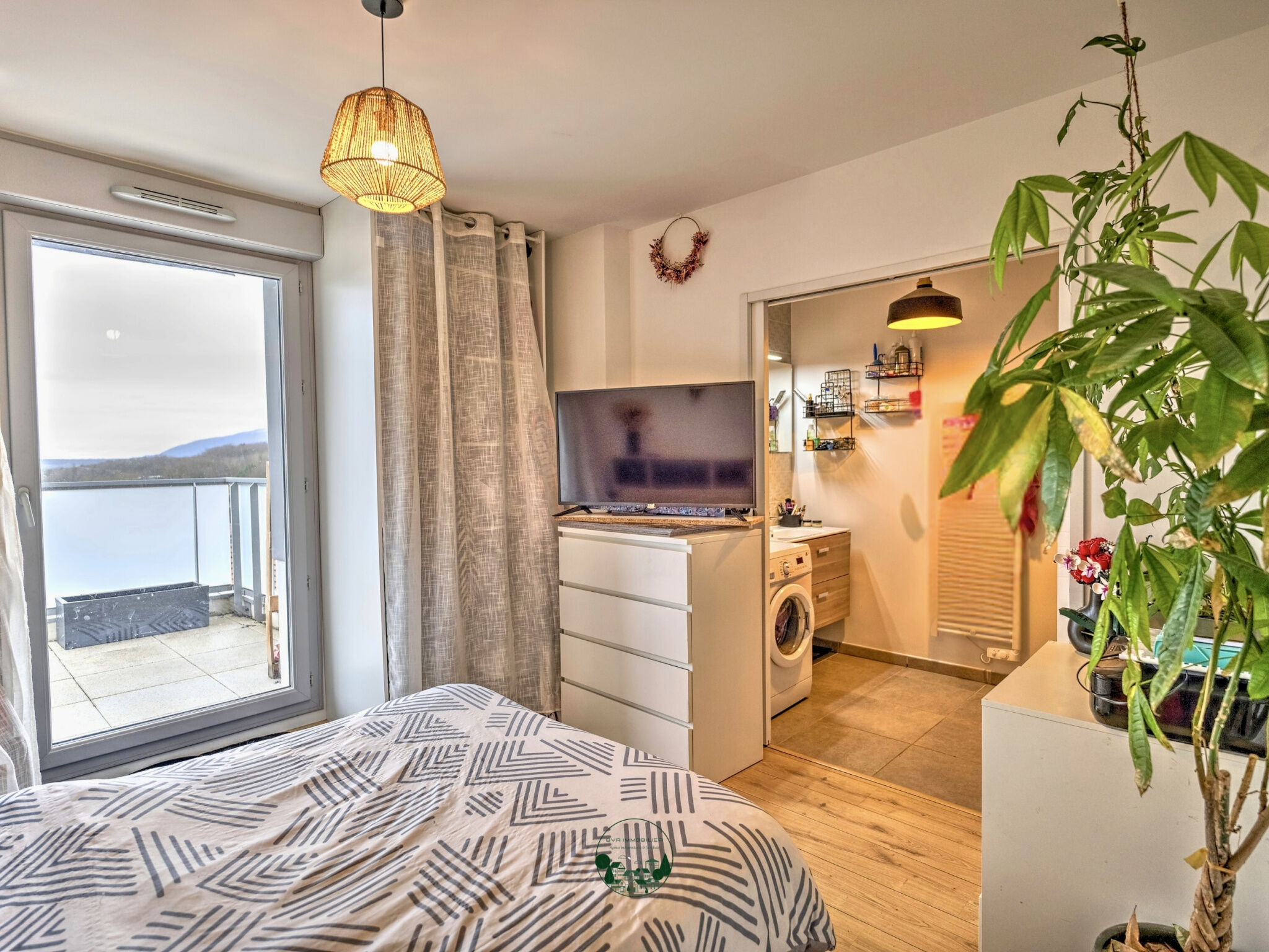 L'espace nuit est composé d'une chambre avec porte fenêtre, accès direct à la salle d'eau disposant de nombreux rangements.