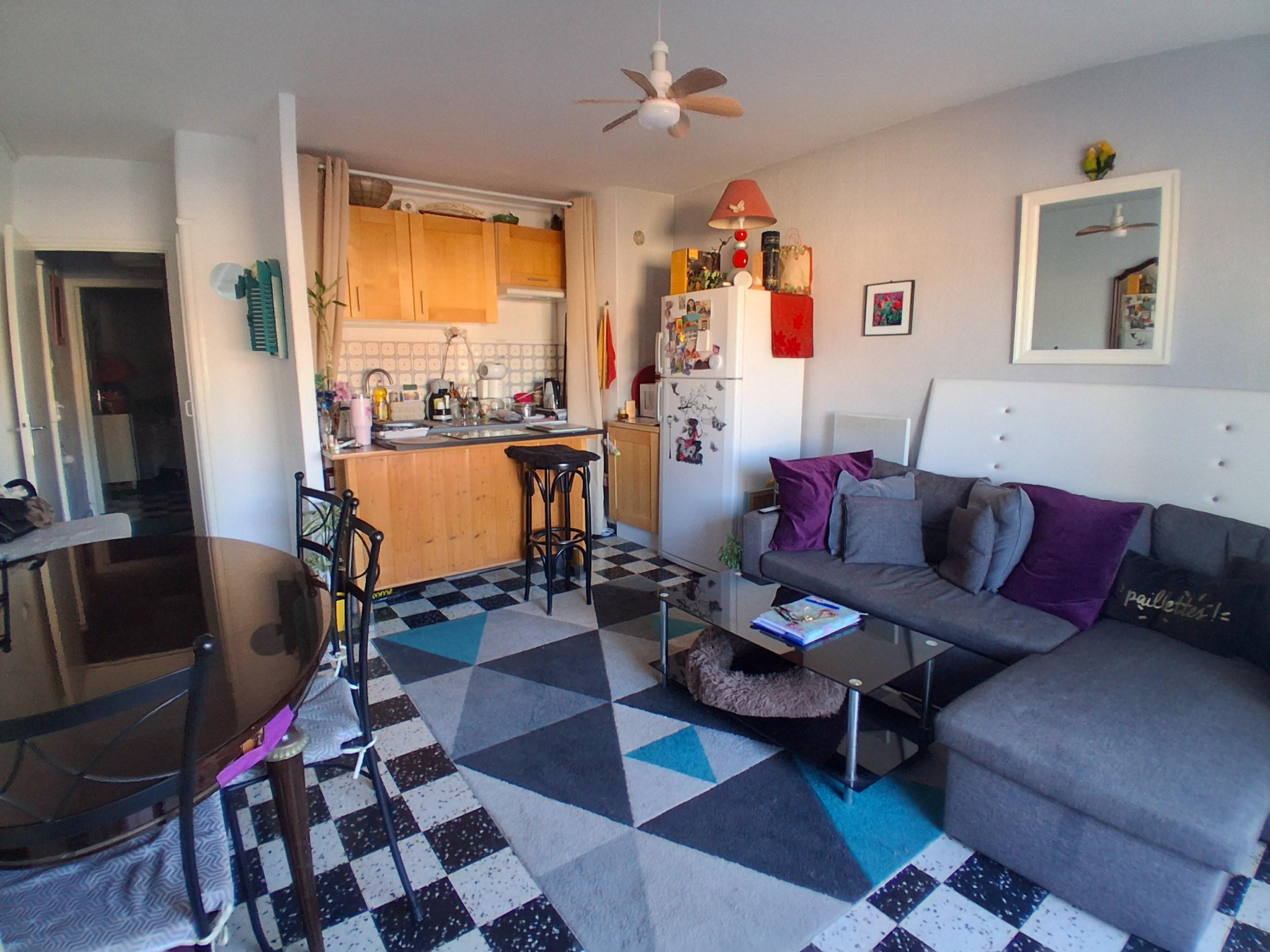 Vous découvirez une pièce de vie spacieuse : un séjour chaleureux avec cuisine ouverte ouvrant sur un extérieur pour profiter des douces soirées méditerranéennes, une chambre confortable avec rangements, idéales pour une famille ou pour recevoir.