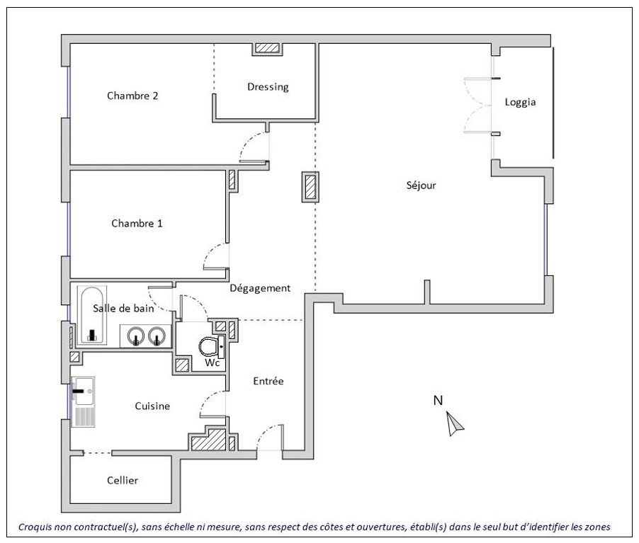 Il est composé d'une entrée avec placard, d'un salon/salle à manger en parquet (33m2), 2 chambres en parquet dont une avec dressing (possibilité de créer une 3ème chambre), cuisine équipée séparée avec un cellier attenant, salle de bains et wc séparé.