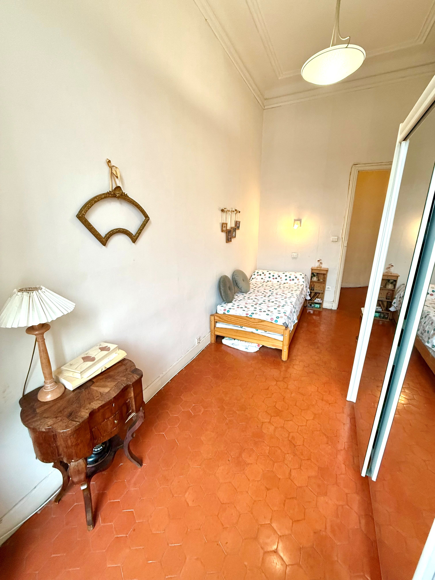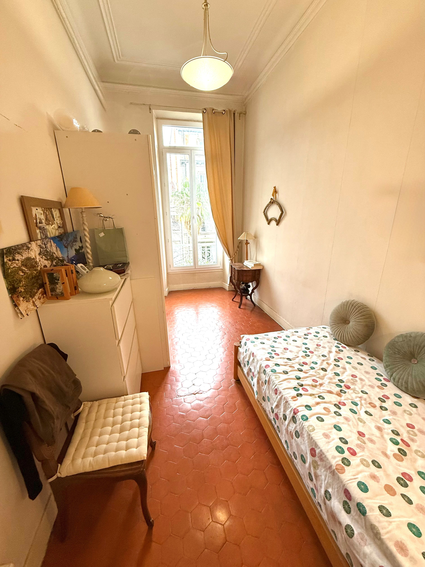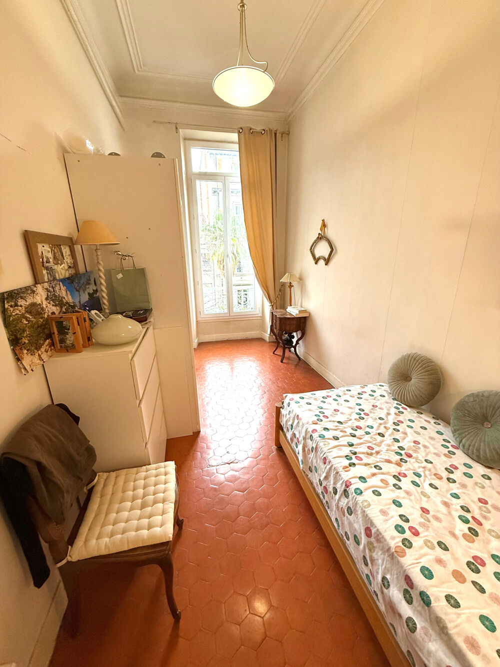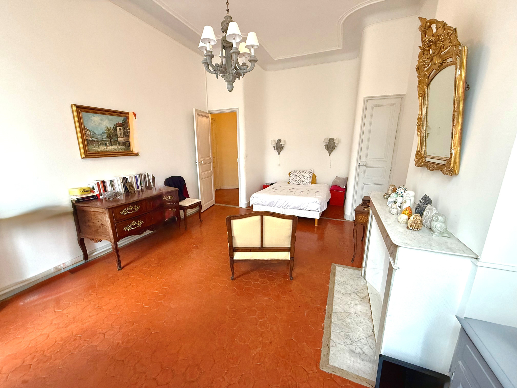 Dés la porte franchie vous serez charmé par la hauteur sous plafond de cet appartement bourgeois, donnant un volume considérable au bien, ne laissant pas en reste le sol, revêtu de tomettes.