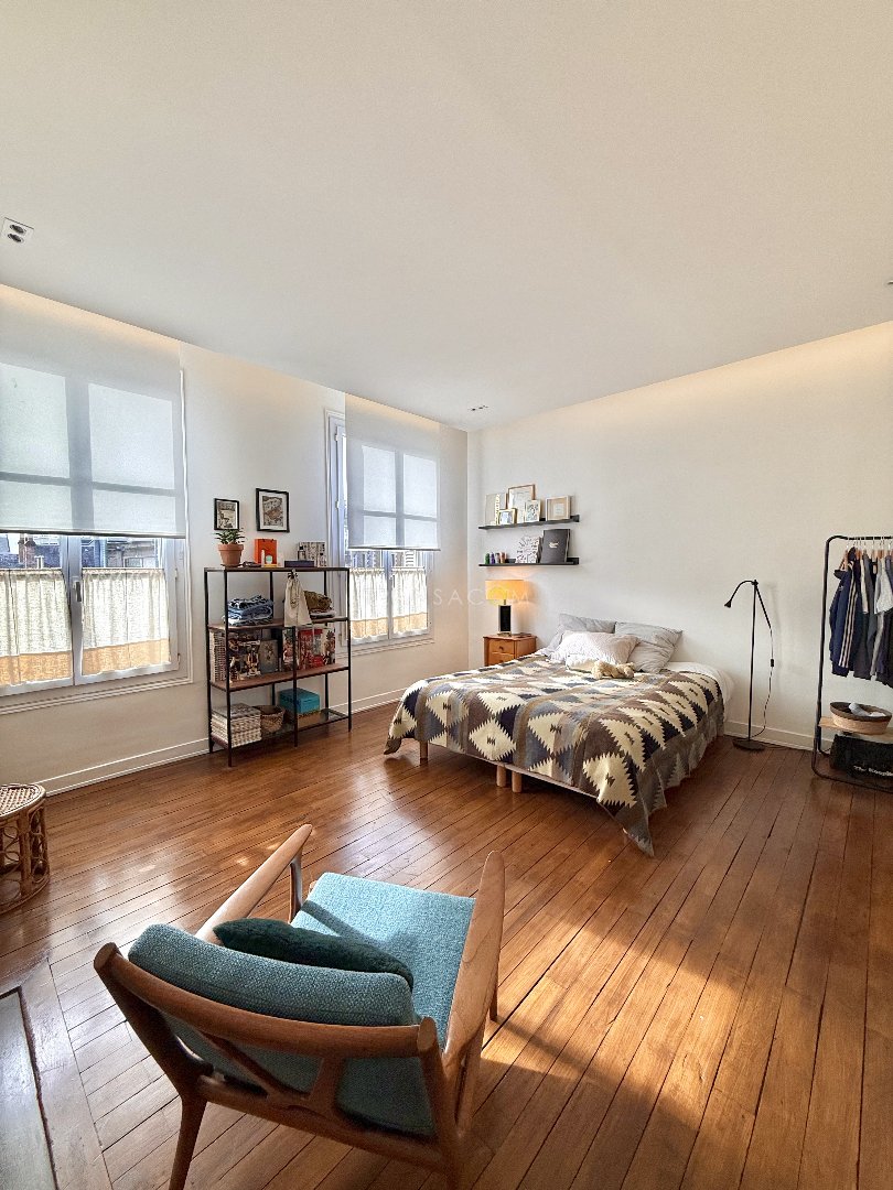 Situé à deux pas de l'Hôtel de Ville, au troisième étage d'un immeuble haussmannien (sans ascenseur), somptueux appartement offrant : vaste entrée, 3 chambres, bureau, salon, cuisine équipée, salle de bain.Un studio au 5ème étage et une cave complètent ce bien.
