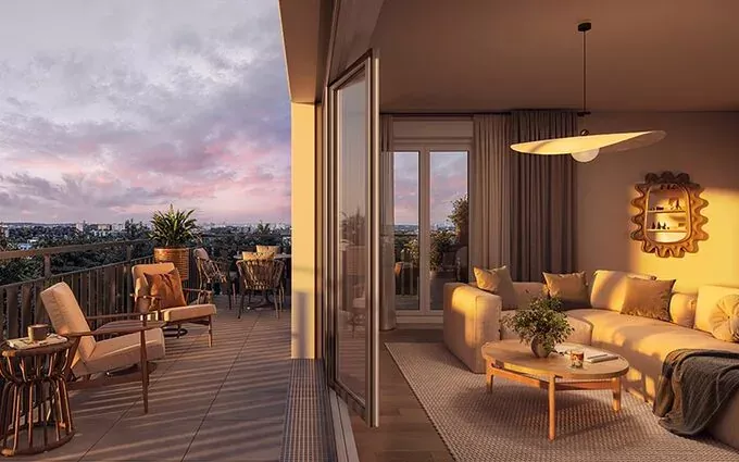 Grand et lumineux appartement 4 pièces de 73m² composé d'un séjour / cuisine de 29m² avec de grandes ouvertures ; d'une belle terrasse d'angle de 22m² ; de trois belles chambres avec placard ; de deux salles d'eau et d'un WC séparé.