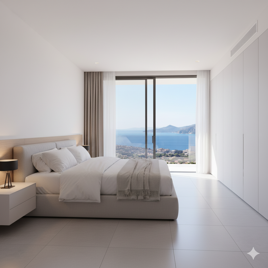 Situation : La résidence est perchée sur les hauteurs de Calvi, offrant une vue panoramique sur la baie et les montagnes corses.