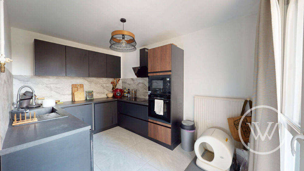 Un balcon est aussi accessible par la cuisine exposée au Sud et donnant sur les espaces verts de la copropriété, avec également accès à une loggia (non inclus dans la surface habitable).