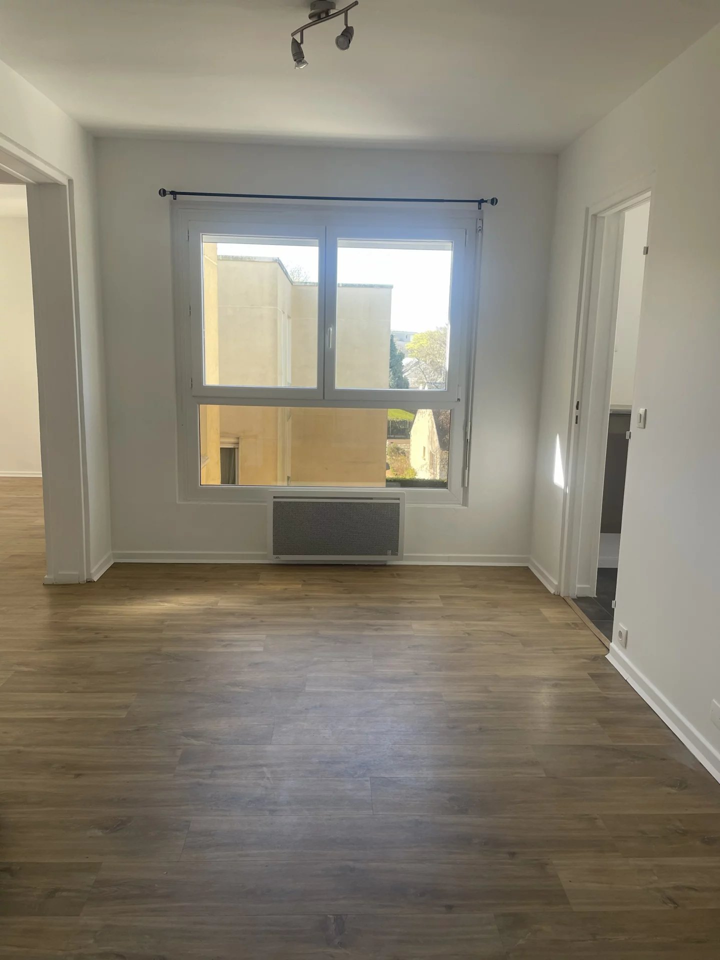 L'appartement comprend une entrée avec placards, un séjour, un salon lumineux, une cuisine séparée et équipée, deux chambres avec rangements intégrés, une salle de bain, un WC séparé ainsi qu'un cellier.