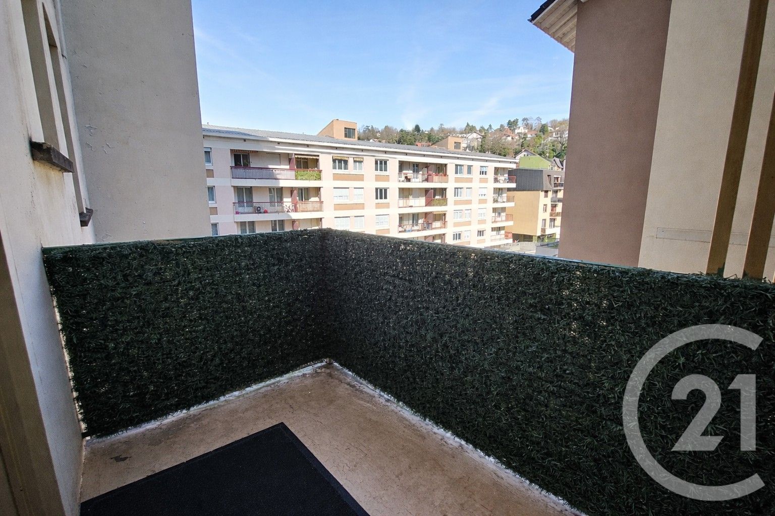 Côté Est, la cuisine s'ouvre sur un balcon. Côté Ouest, le séjour prolongé par un large balcon profite d'une vue dégagée sur la ville et la Dent du Chat.