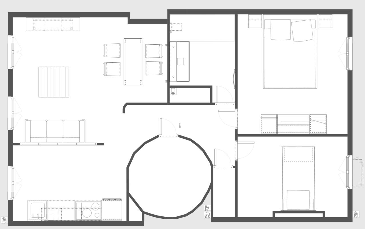 Cet appartement se compose d'un grand salon / salle à manger avec cuisine semi - fermée avec verrière, toute équipée (four, plaques, hotte, frigo, lave vaisselle) de deux chambres (ou bureau) côté cour, d'une salle de bain et d'un WC séparé. Prestations de qualité et finitions soignées.