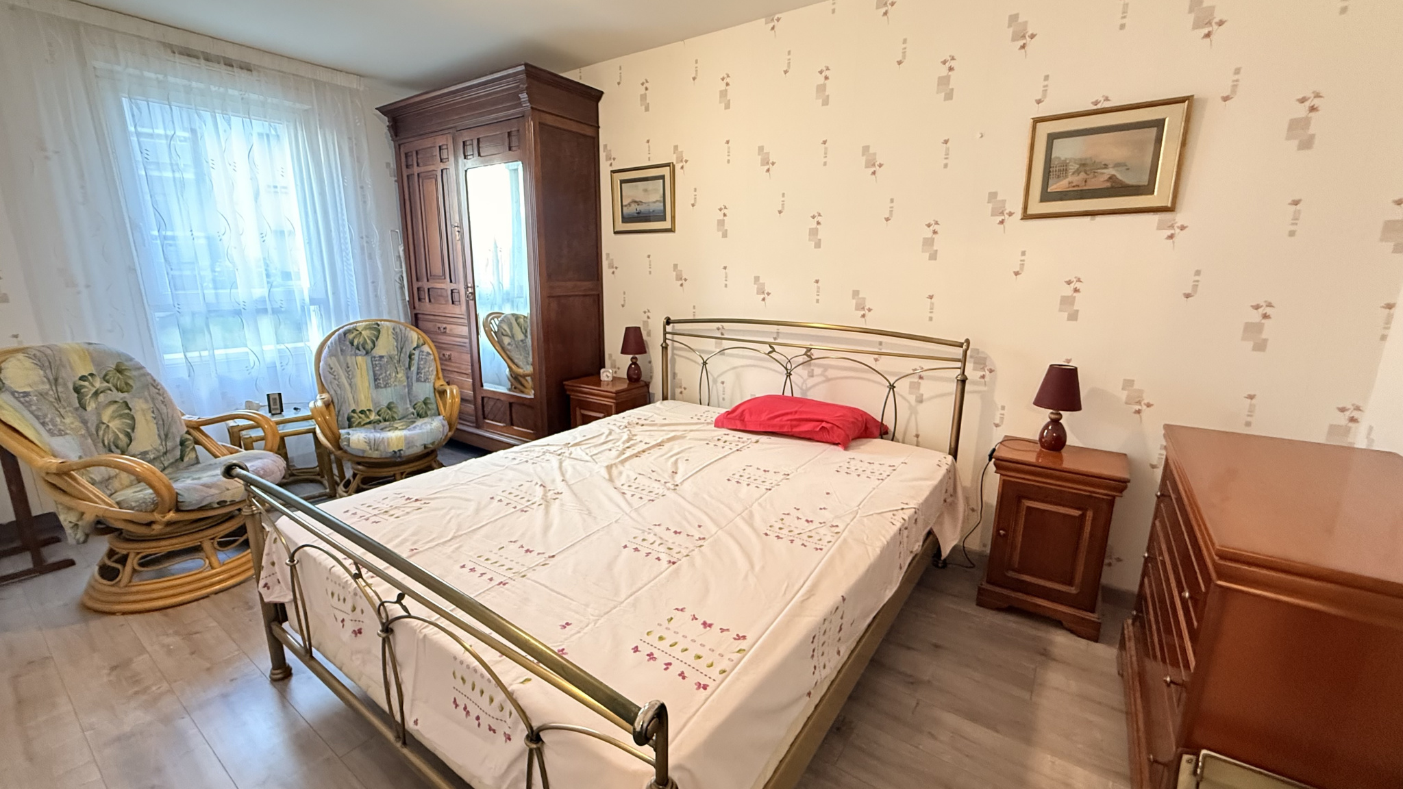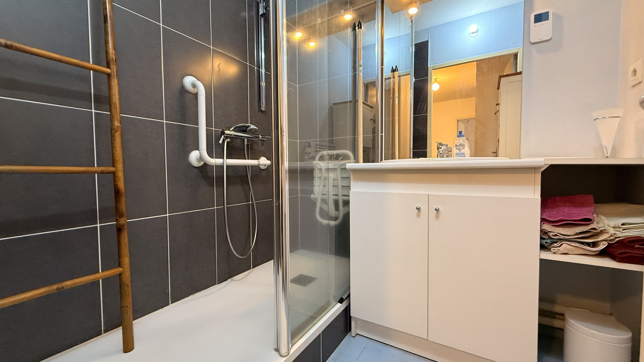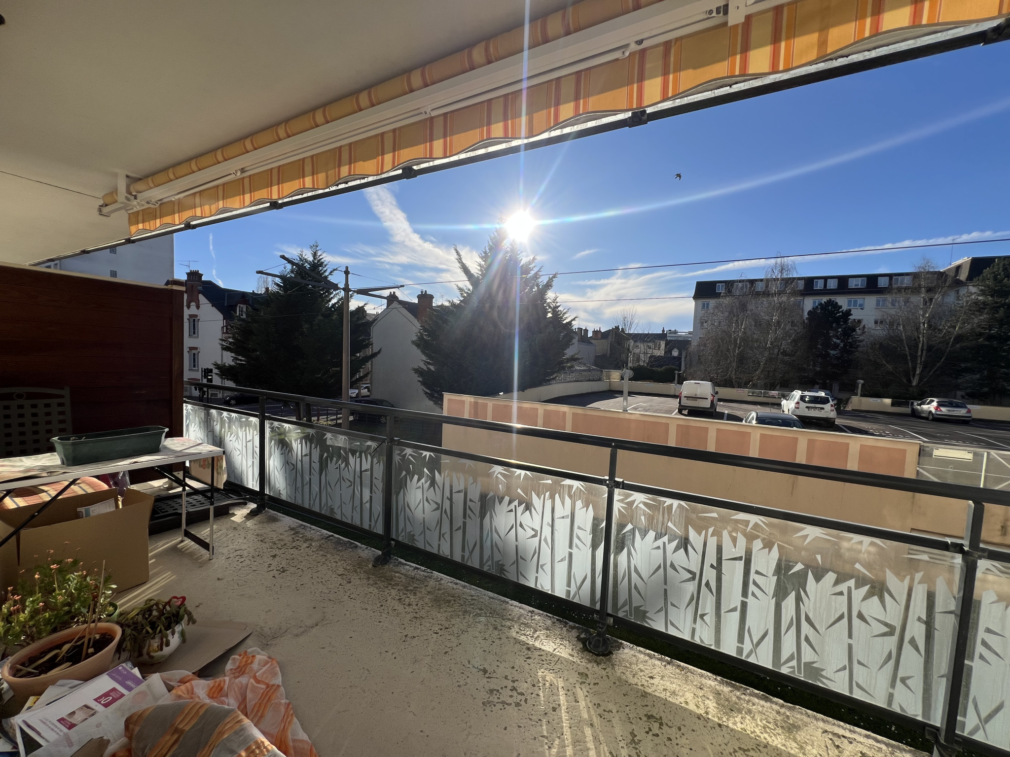 Il se compose d'une entrée avec placards, d'un séjour spacieux donnant accès à un grand balcon équipé d'un store banne, parfait pour profiter des beaux jours. La cuisine ouverte, aménagée et équipée, offre un espace convivial et fonctionnel. Un WC indépendant complète la partie jour.