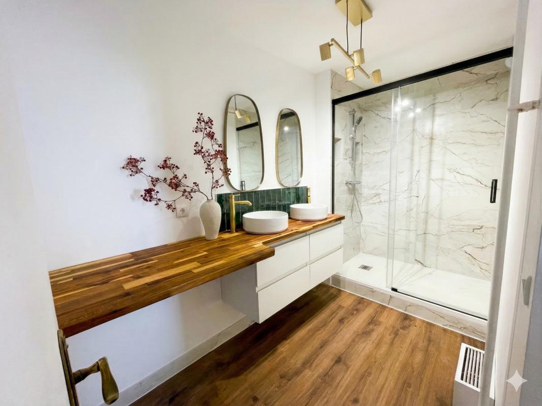 - une salle de bain moderne entièrement refaite