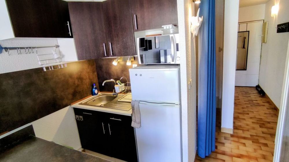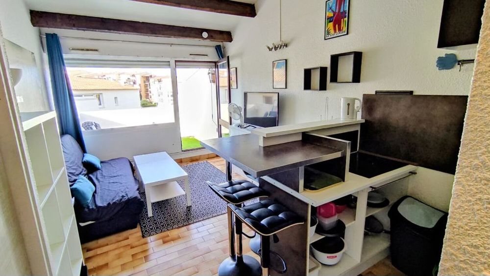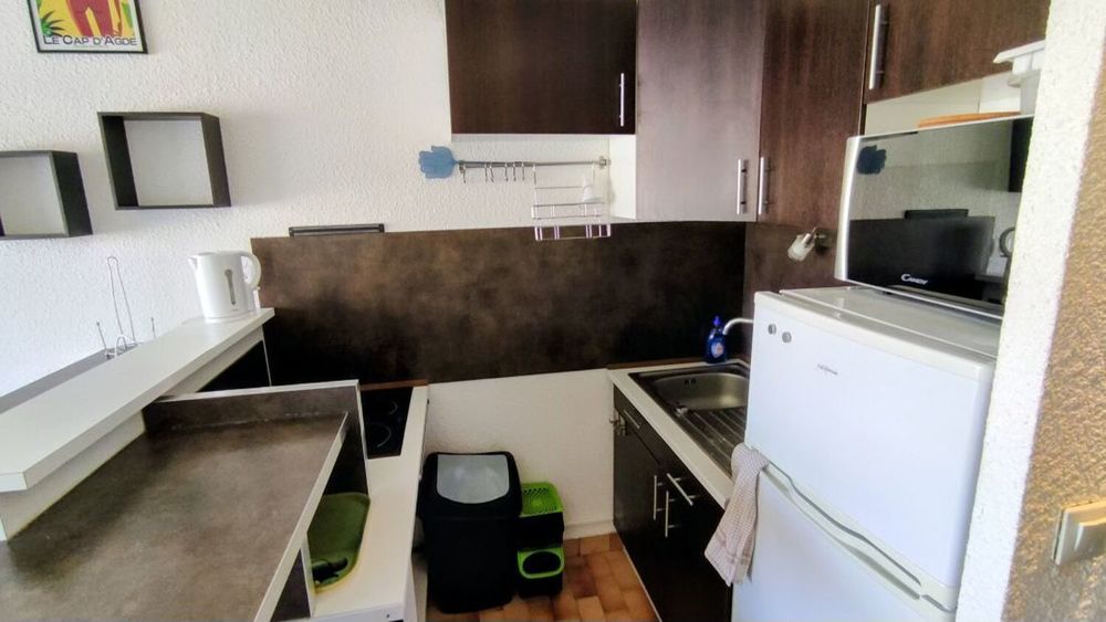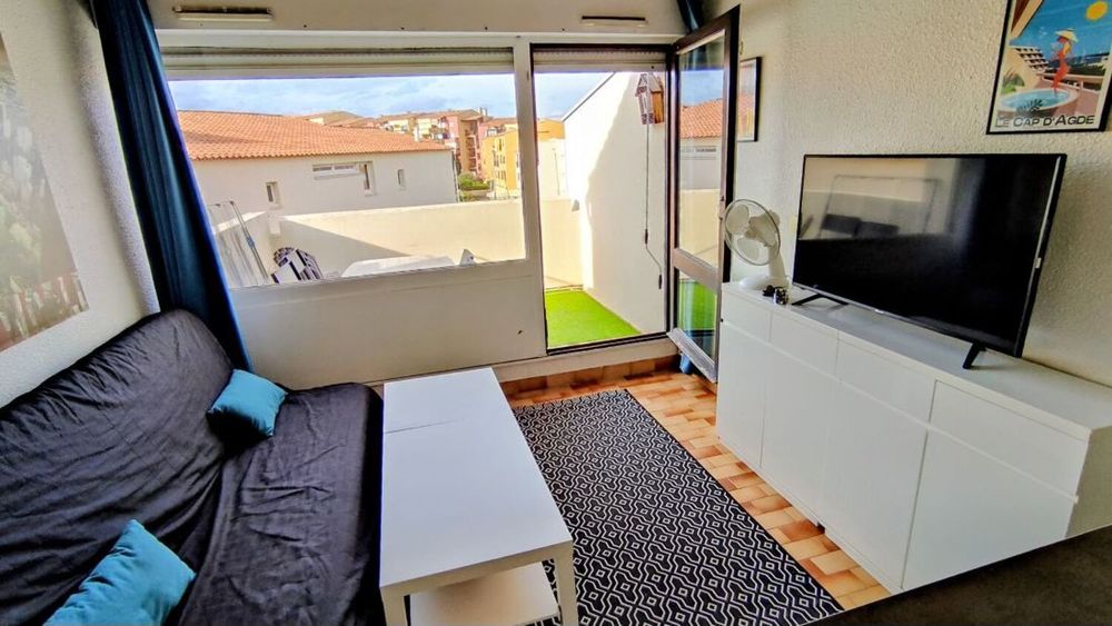 LE CAP D'AGDE : Proche Avant Port / Bas des falaises: Vue Chenal STUDIO-CABINE ( 26,71m² ) + terrasse 7,51m². Comprenant: Entrée, S/eau avec wc, 1 cabine séparée, coin cuisine sur séjour, Terrasse Ouest. PARKING sécurisé. PISCINE dans la résidence. 3 ème et dernier étage. ( Résidence de standing rénovée et en parfait état)- Charges : 1 200€/an. Nbre de lots en copropriété : 175- (Prix honoraires d'agence inclus à la charge du vendeur) - Sauvegarde de copropriété : Néant. Energie : C/204 - GES B/7. Clim réversible.* Prix net, hors frais notarié, d'enregistrement et de publicité foncière.