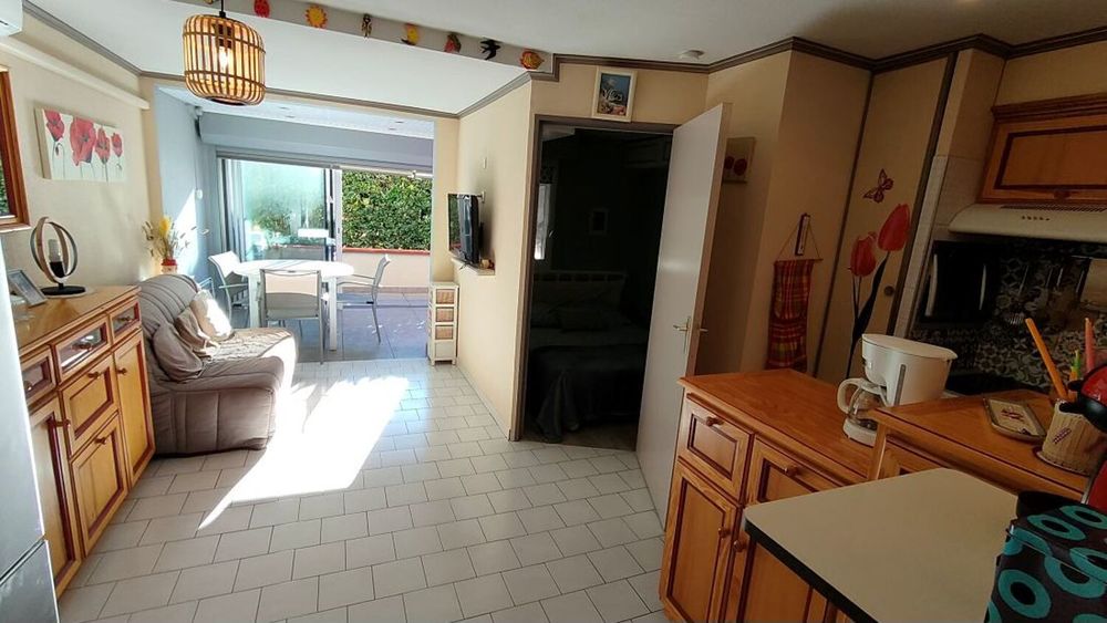LE CAP D'AGDE : Secteur des FALAISES, en rez de chaussée, appartement T2/cabine avec véranda de 9,75m², terrasse de 4,8m² et parking privatif.