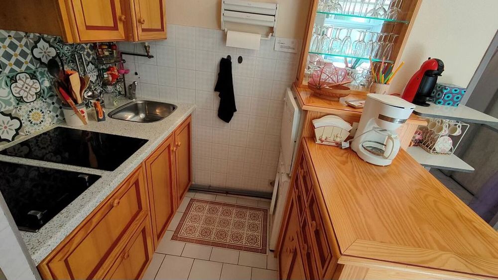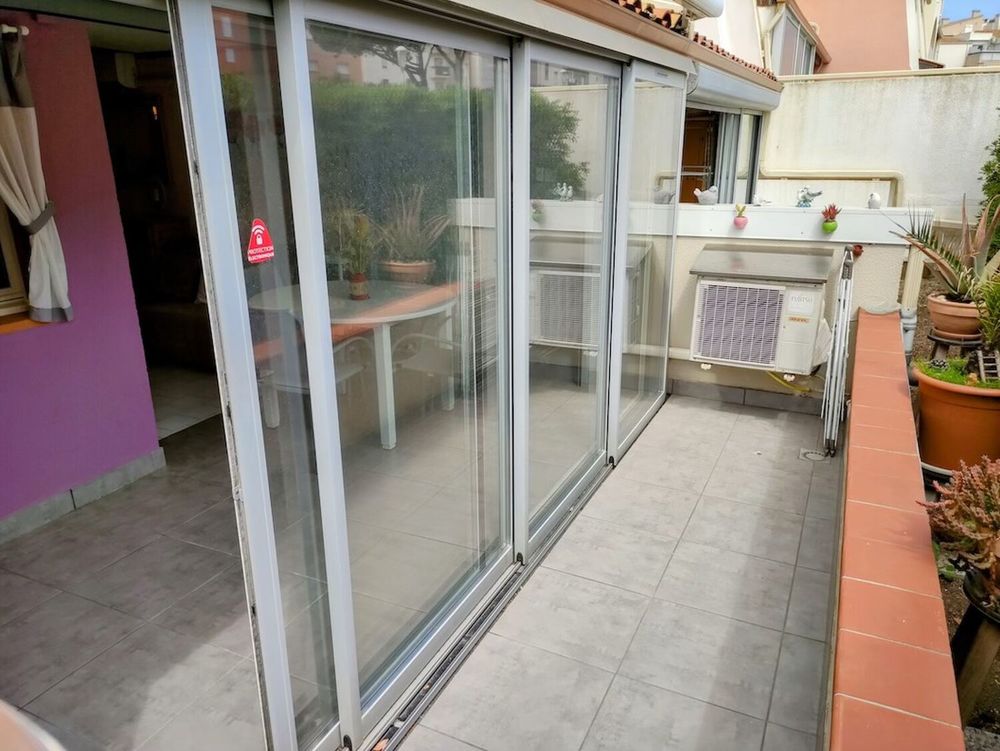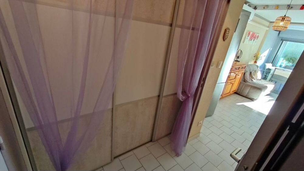 LE CAP D'AGDE : Secteur des FALAISES, en rez de chaussée, appartement T2/cabine avec véranda de 9,75m², terrasse de 4,8m² et parking privatif. Piscine dans la résidence. comprenant : Entrée, poss. cabine ( 2 lits superposée, en retirant le placard ), wc, salle d'eau, séjour, cuisine équipée, 1 chambre avec placard, véranda double vitrage, 4 vantaux + volets roulants électriques. climatisation réversible. vendu meublé, surface utile 38m² avec véranda +Terrasse EST. Rue en impasse! 100m plage ! Copropriété de 160 lots, charges 1169€/an, plan de sauvegarde néant, Prix honoraires inclus à la charge du vendeur.* Prix net, hors frais notarié, d'enregistrement et de publicité foncière.