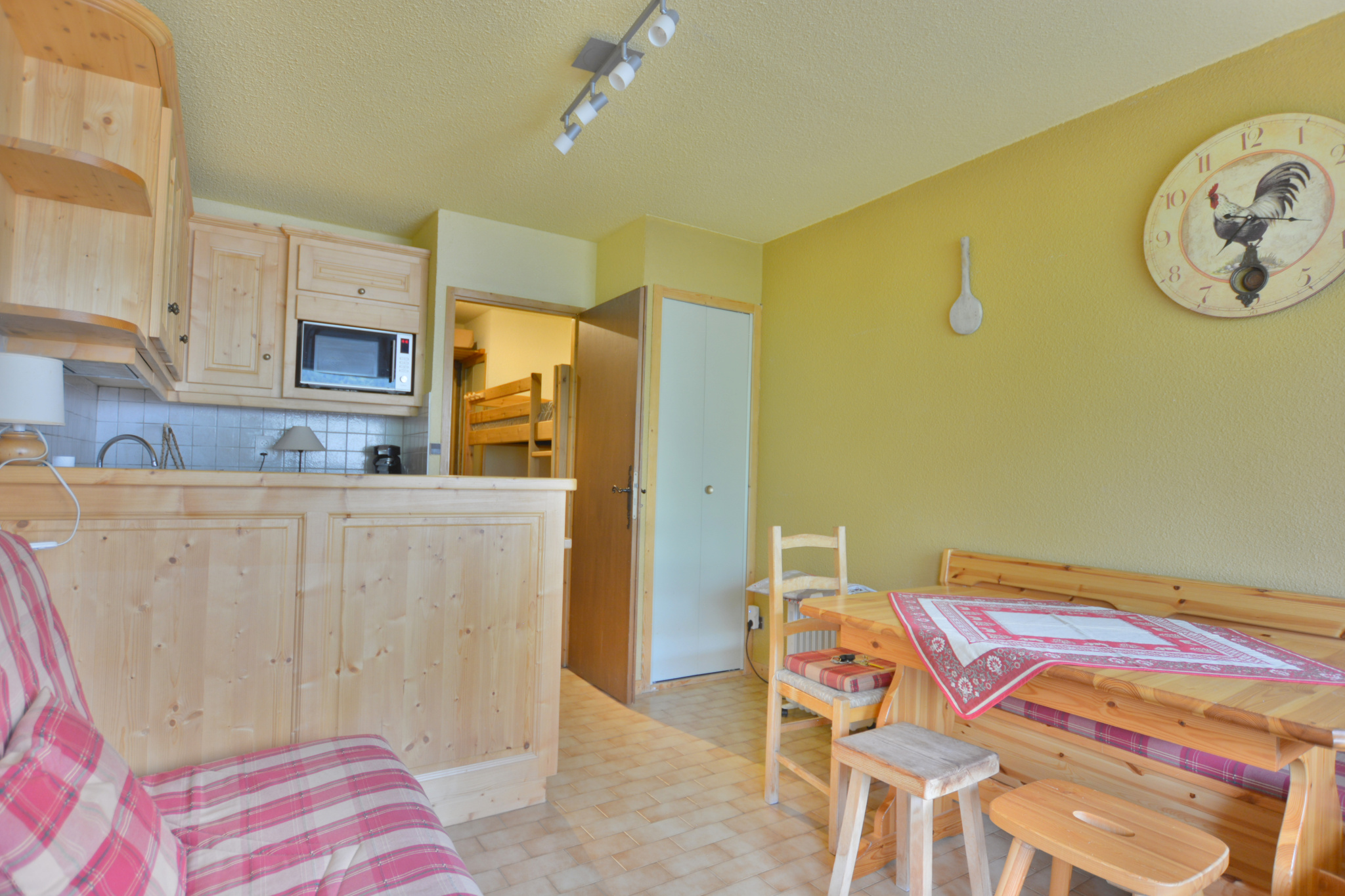 A deux pas des pistes de ski (domaine Paradiski) et à proximité immédiate du centre station, ce studio confortable de 21 m2 habitables bénéficie d'une exposition Sud-Est dans un quartier calme et ensoleillé. Il offre une capacité d'accueil de 4 personnes, avec une entrée équipée de rangements, un coin montagne avec lits superposés, une salle de bains, un WC séparé, ainsi qu'une pièce de vie avec cuisine ouverte donnant accès à une terrasse. Un casier à skis vient compléter ce bien. Idéal en tant que pied-à-terre à la montagne ou pour un investissement locatif. falseDétails :
