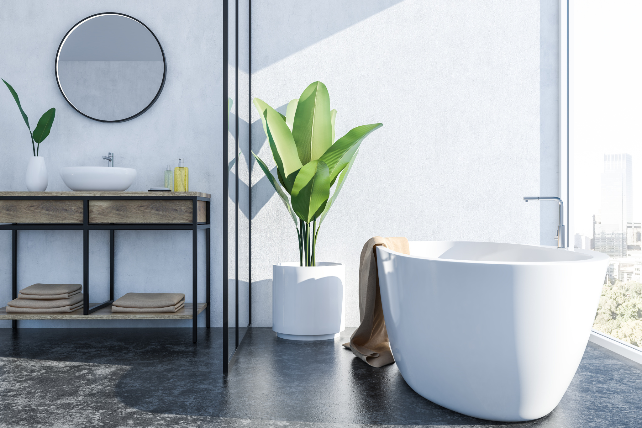 Il est composé d'une grande pièce de vie de 32m2, de 2 belles chambres, d'une salle de bain entièrement équipée (meuble vasque, baignoire, sèche serviette) et d'un WC séparé (suspendu).