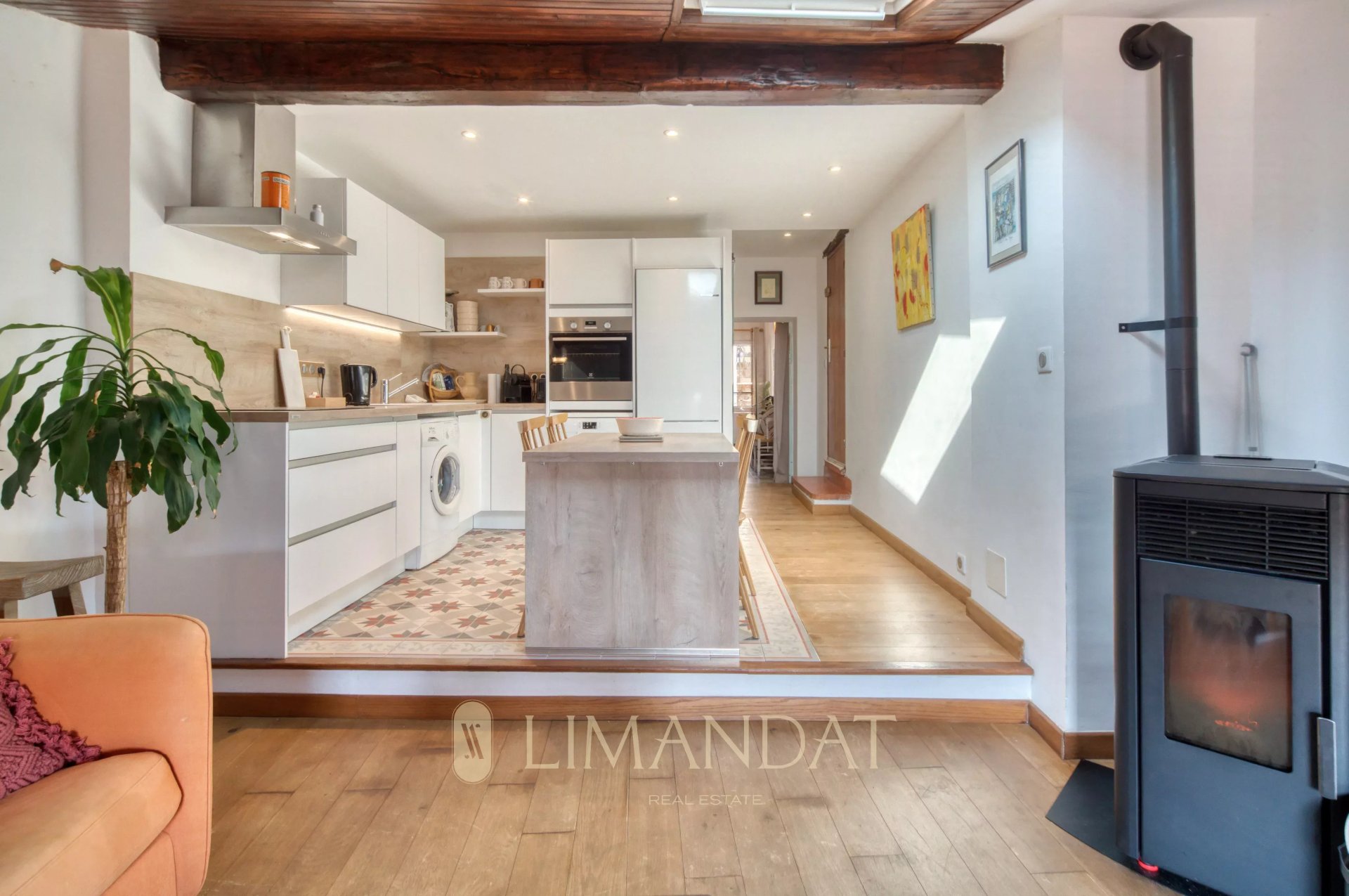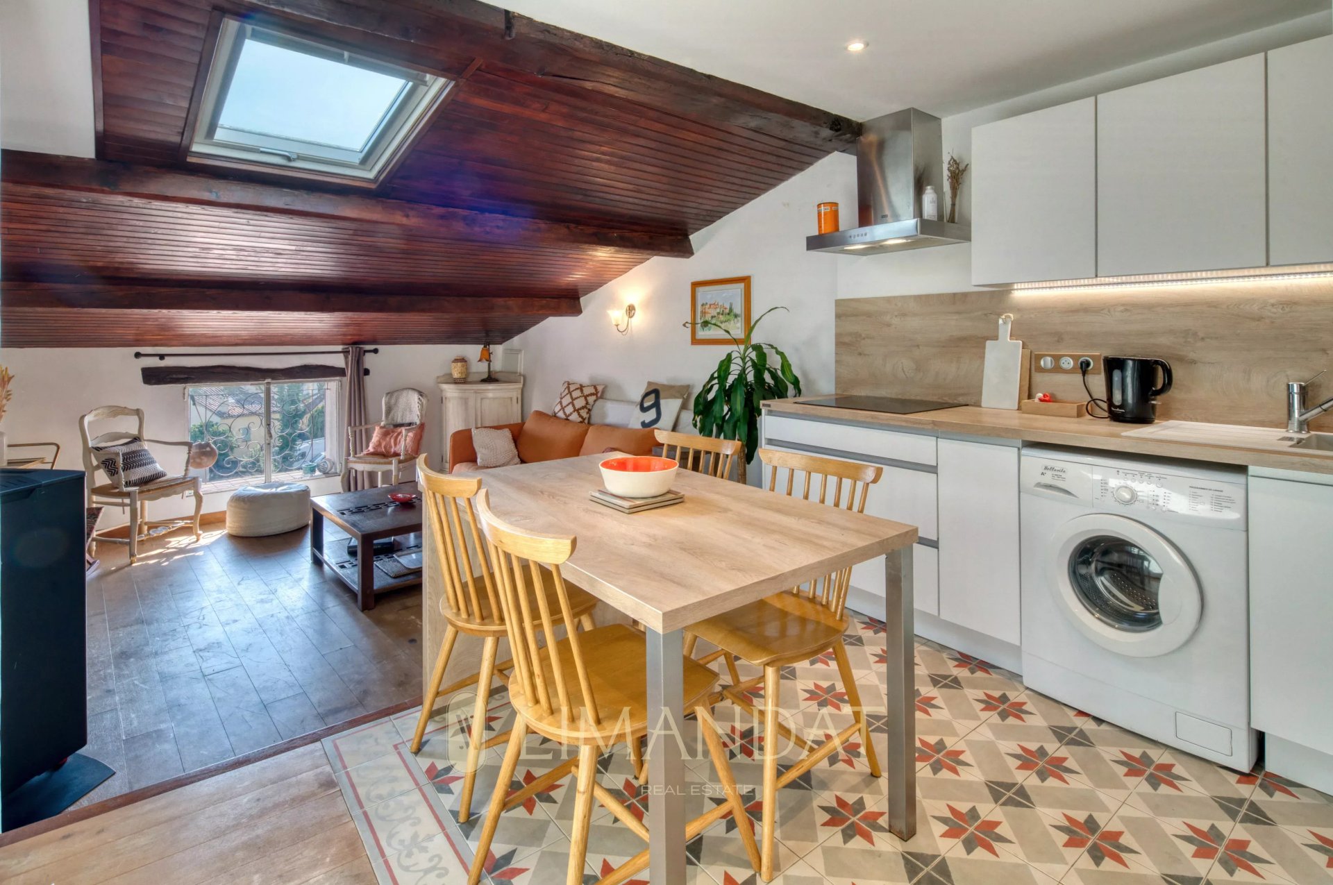 Exclusivité Limandat Real Estate- Au cœur du vieux village de Mougins, dans l'atmosphère authentique de ses ruelles pavées et à quelques pas des restaurants et galeries qui font la renommée du village, cet appartement plein de caractère se situe au dernier étage d'une maison de village typique.