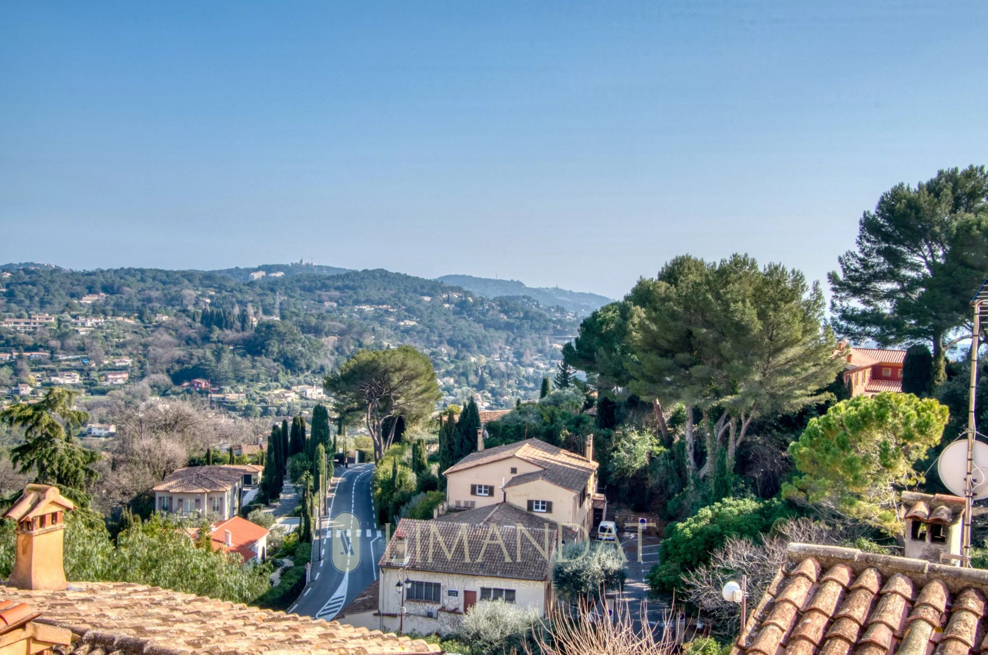 Situé en position dominante, le bien bénéficie d'une vue dégagée sur le village et ses toits, avec un agréable aperçu mer qui vient souligner le caractère privilégié de cet emplacement.
