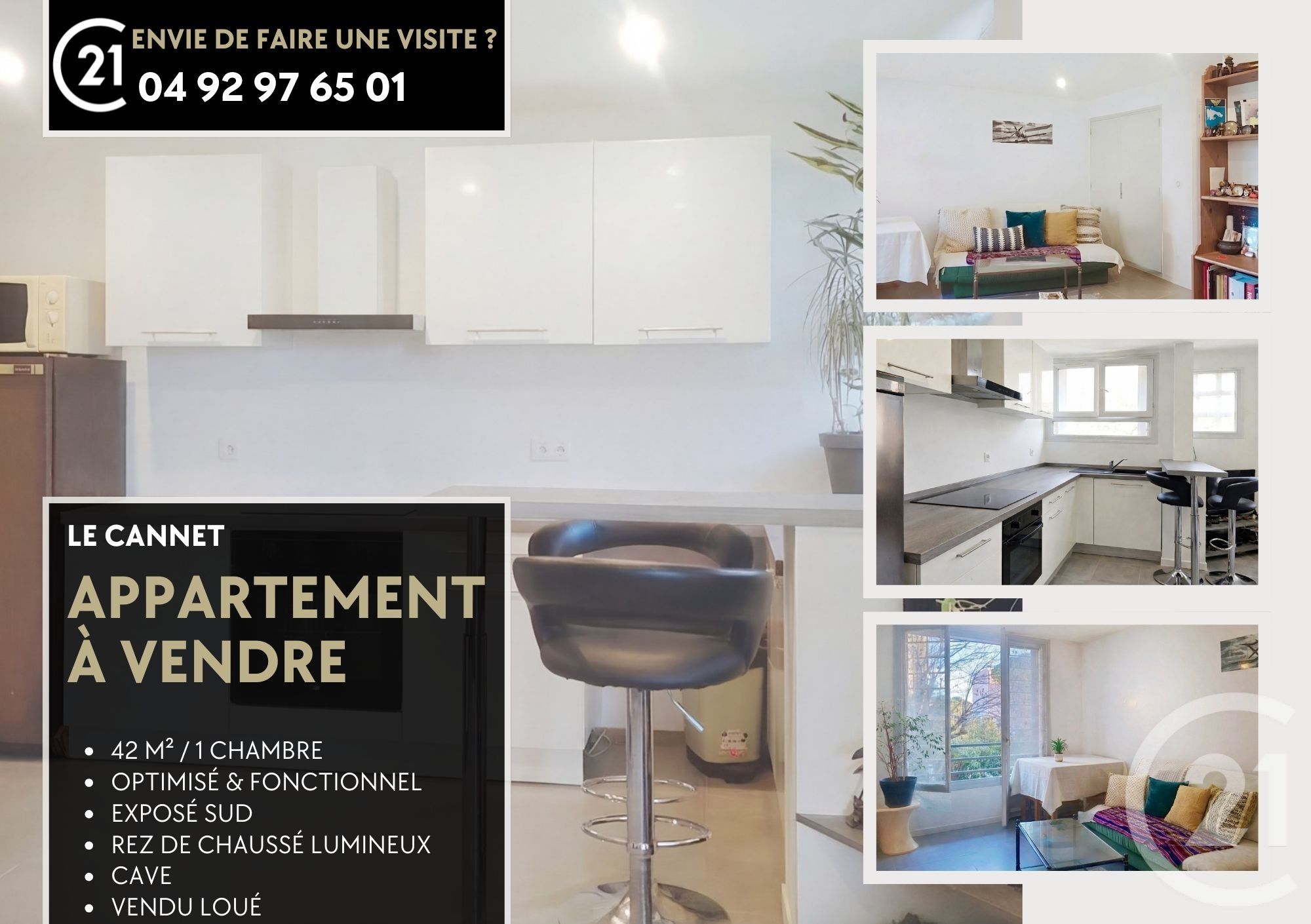 CANNET : Opportunité Investisseur - Rentabilité Assurée.CENTURY 21 AZURIM vous présente une opportunité d'investissement attractive au Cannet : un appartement T2 loué actuellement jusqu'en mars 2028, loyer actuel 650 euros CC mensuel de 42,82m² en rez-de-chaussée, idéalement situé dans un quartier résidentiel calme.