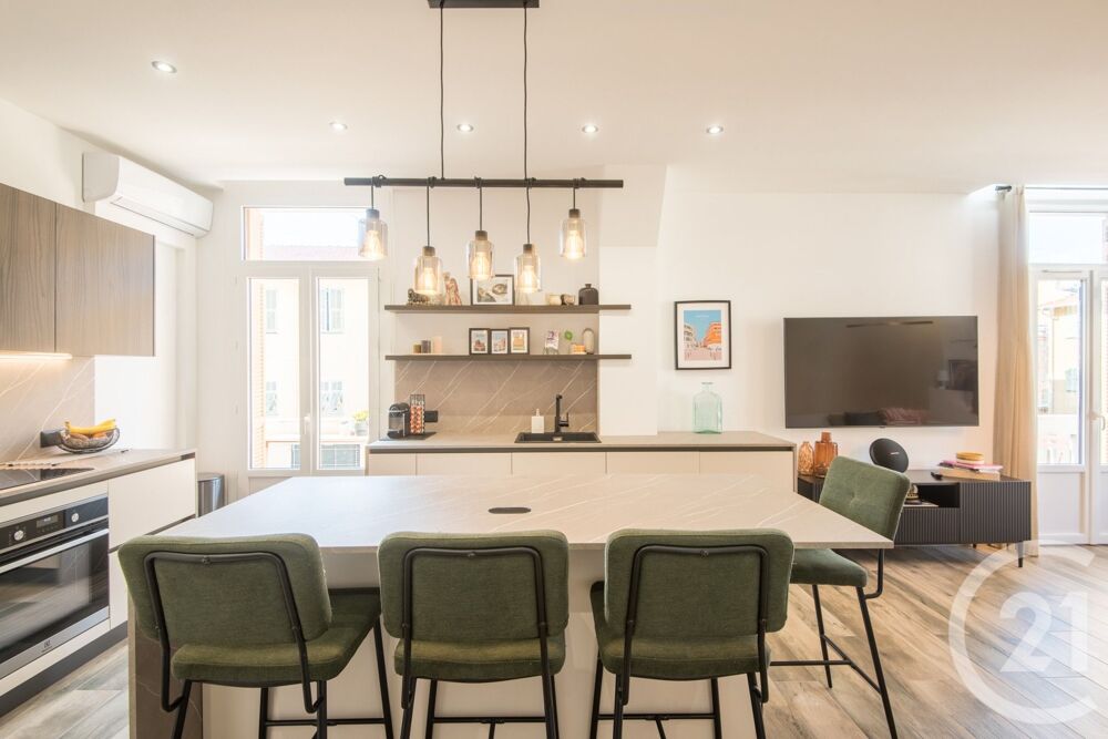 NICE GABRIBALDI / REPUBLIQUE :Superbe appartement 2 pièces de 56M2 d'angle entièrement rénové par architecte, alliant élégance et matériaux de qualité. Ce bien offre un cadre de vie contemporain avec climatisation intégrée et rangements sur mesure.