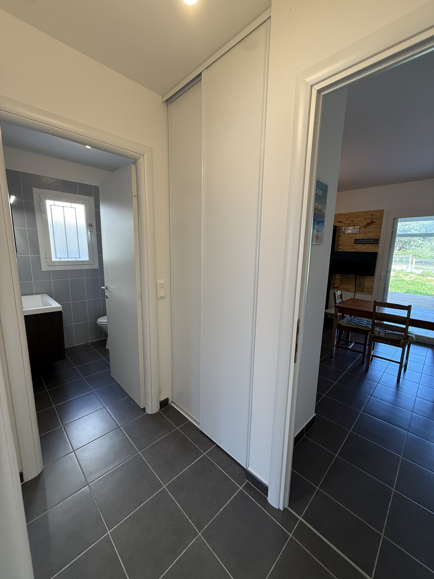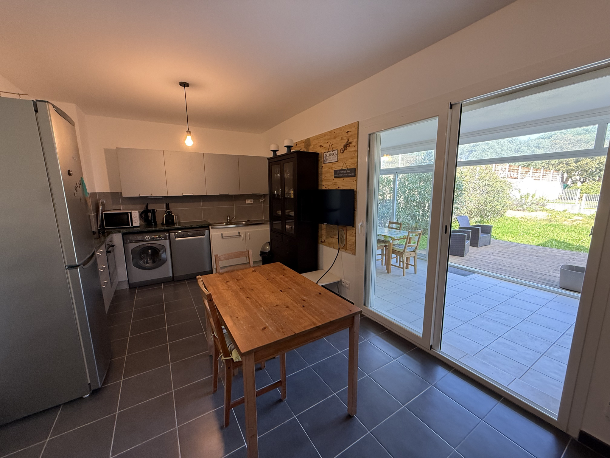 A proximité du centre ville de Calvi et de la plage.Au rez de chaussée d'une résidence calme et securisée avec parking privé et fermé.