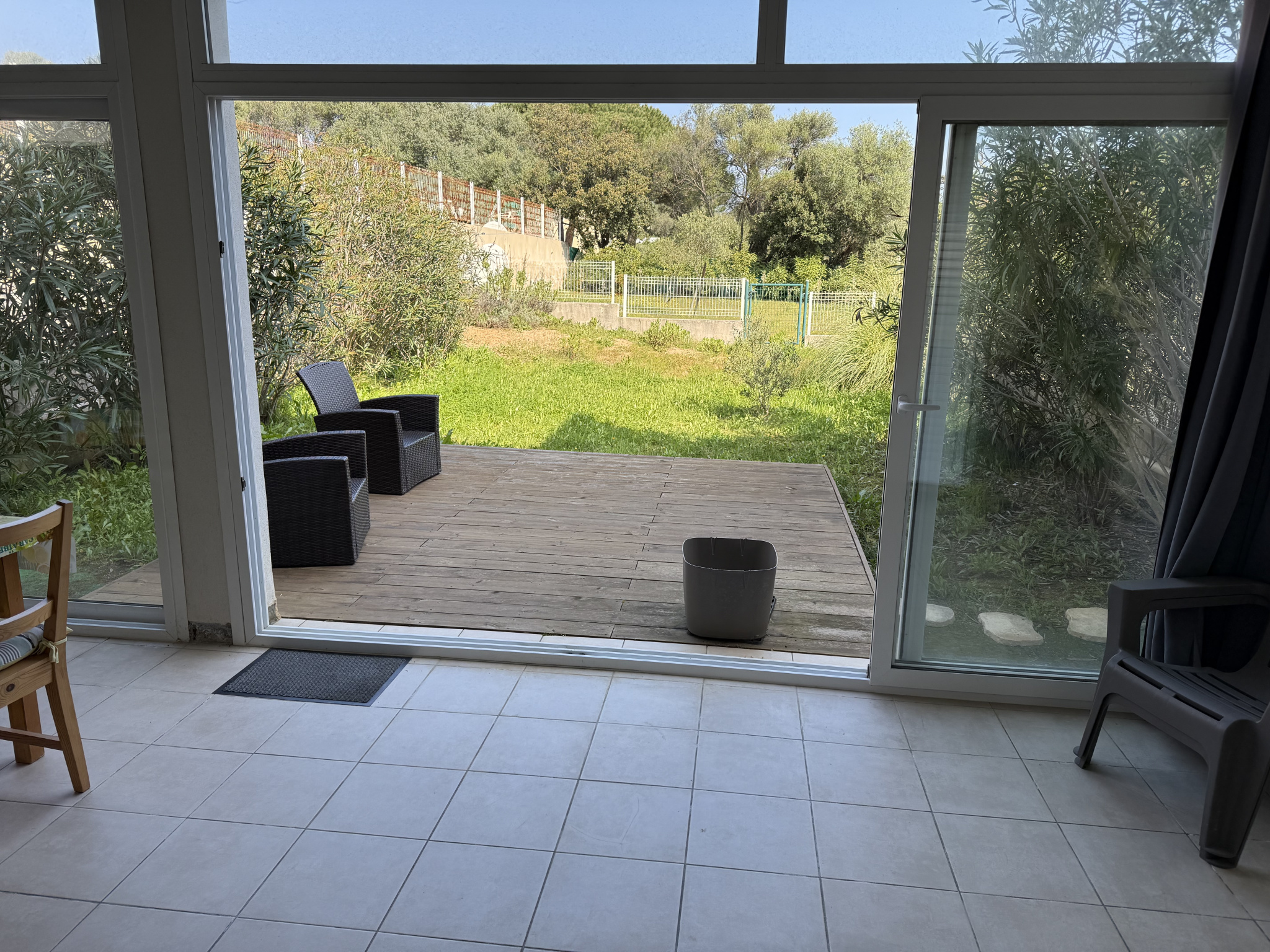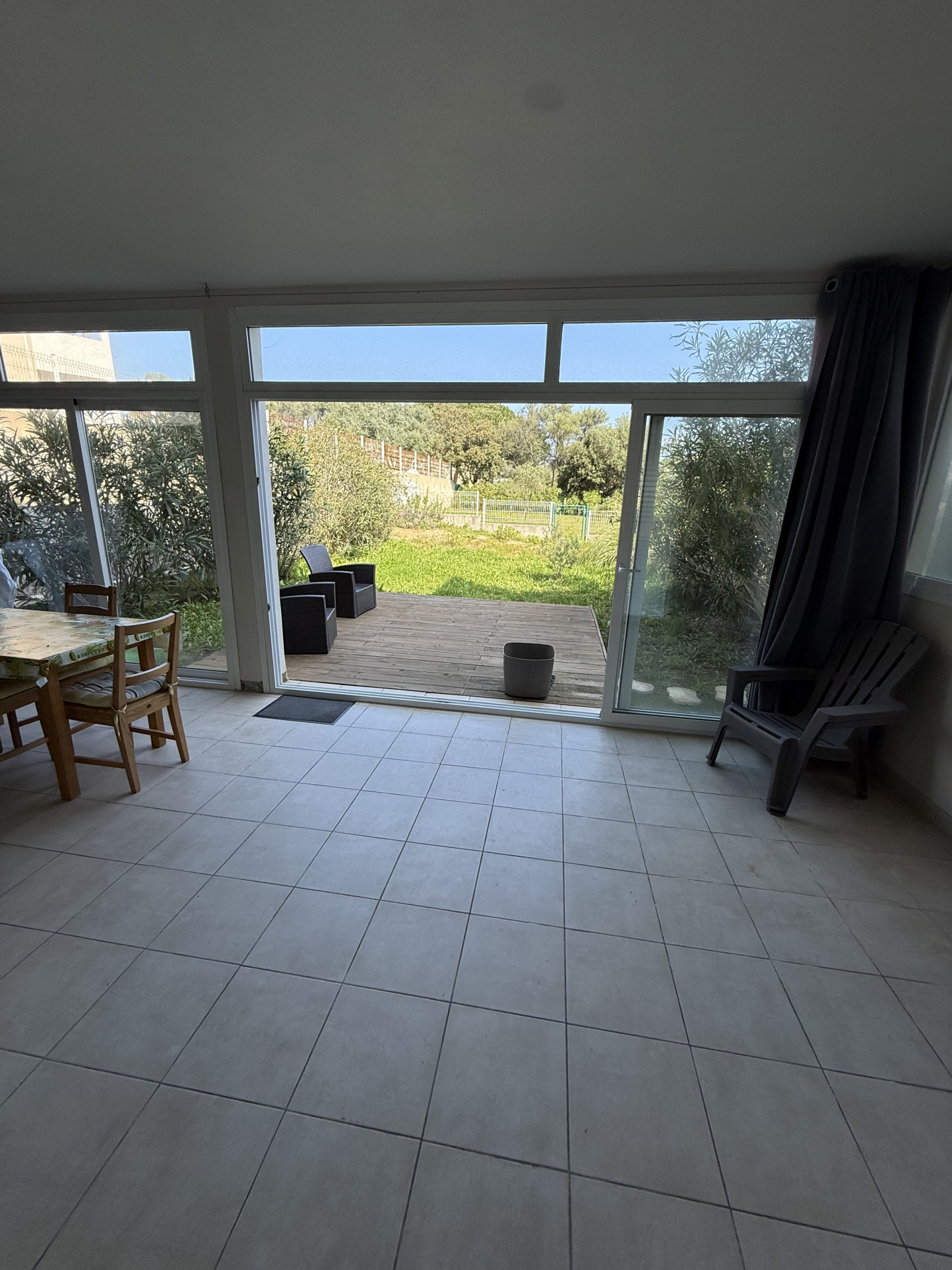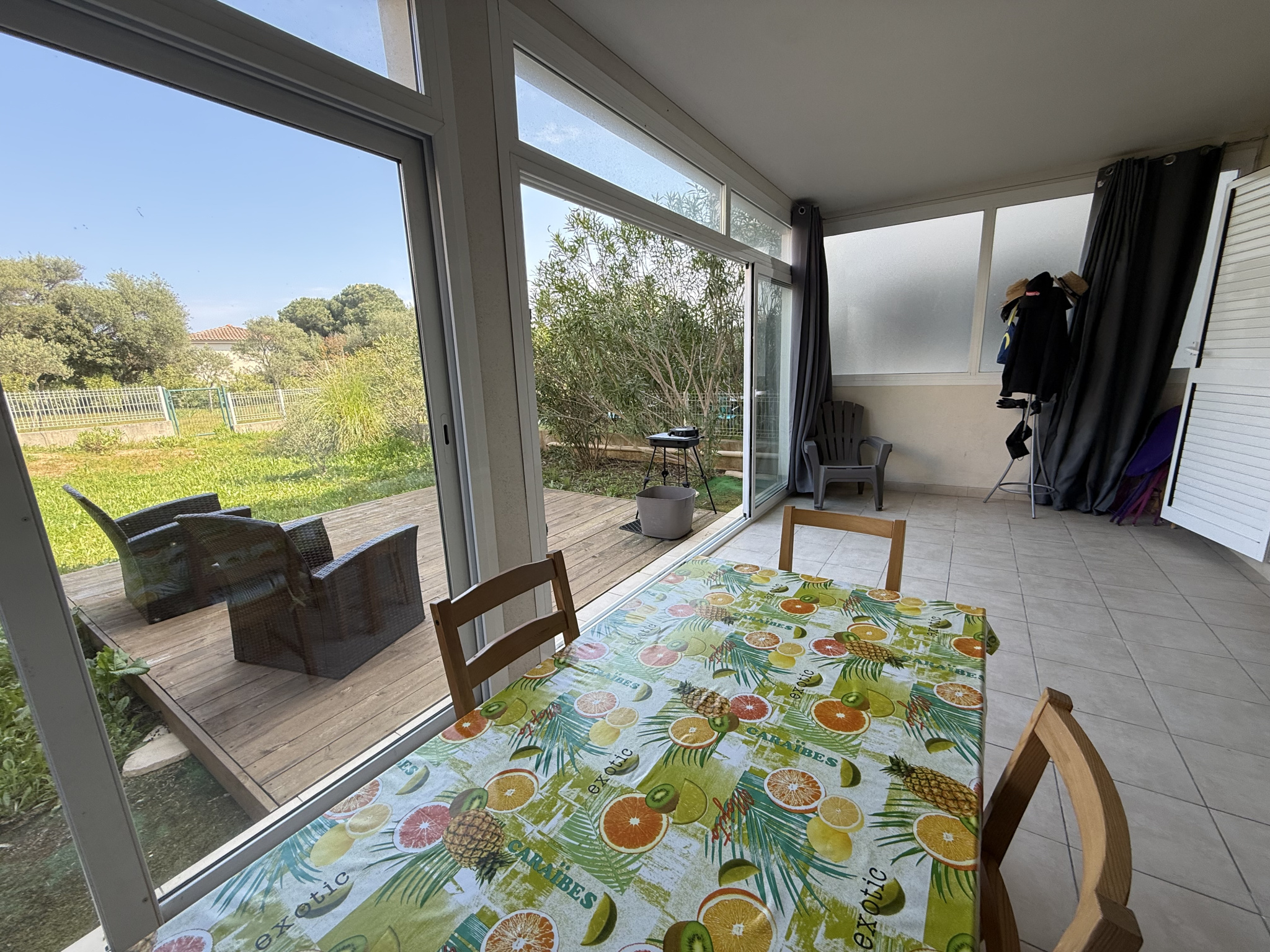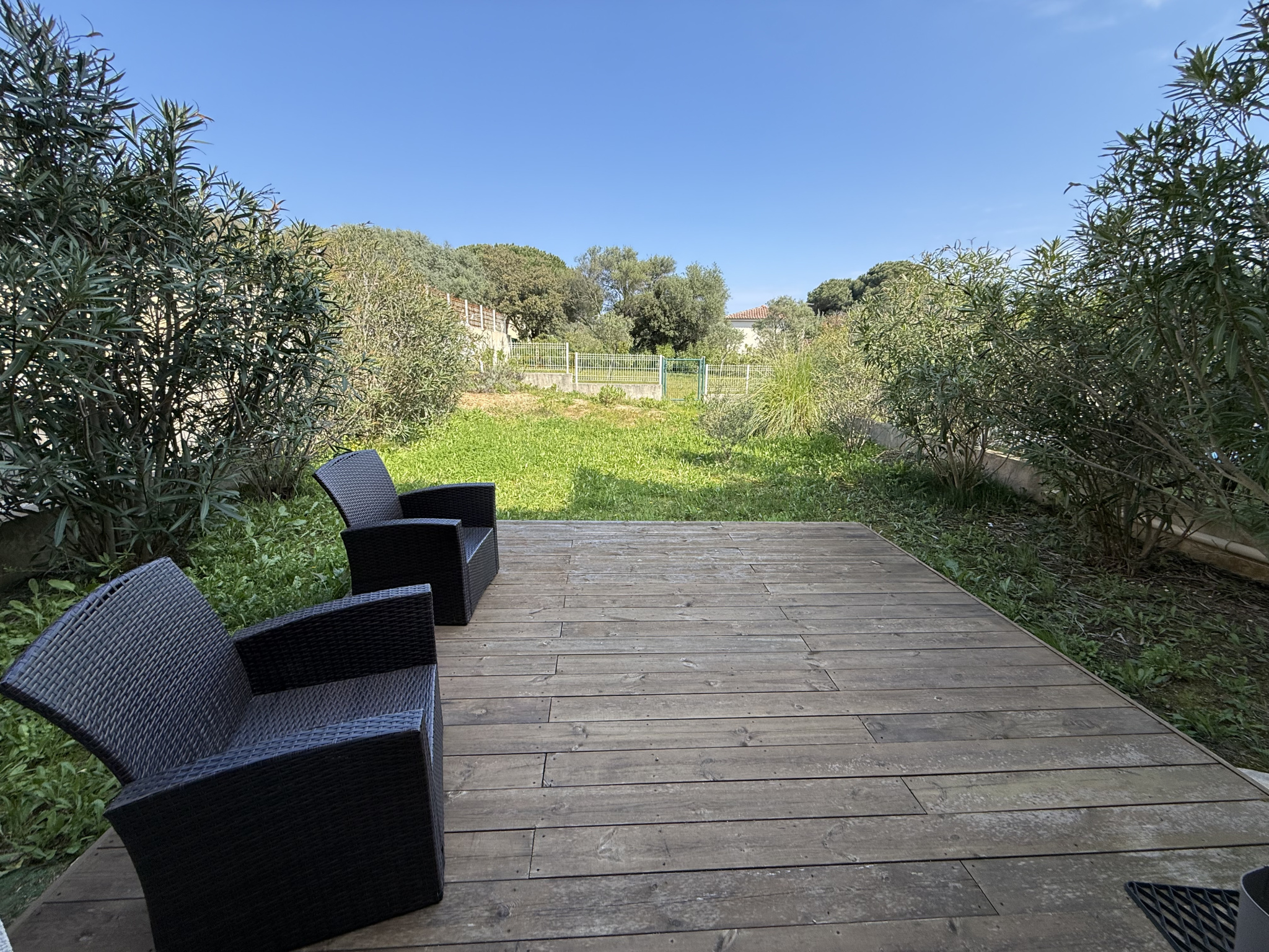 Appartement type 3 climatisé - Surface habitable de 72 m2 et surface loi carrez de 44 m2 en excellent état comprenant séjour climatisé ouvert sur cuisine équipée, dégagement avec placard, deux chambres avec placard, salle de bains/wc, loggia de 28 m2 (avec une partie remise fermée) donnant sur un jardinet cloturé de 70 m2 dont une partie en terrasse (accèes par portillon).