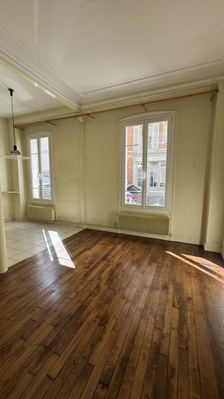 Actuellement double séjour, chambre, cuisine séparée, salle de bain, wc séparés, entrée avec placards.