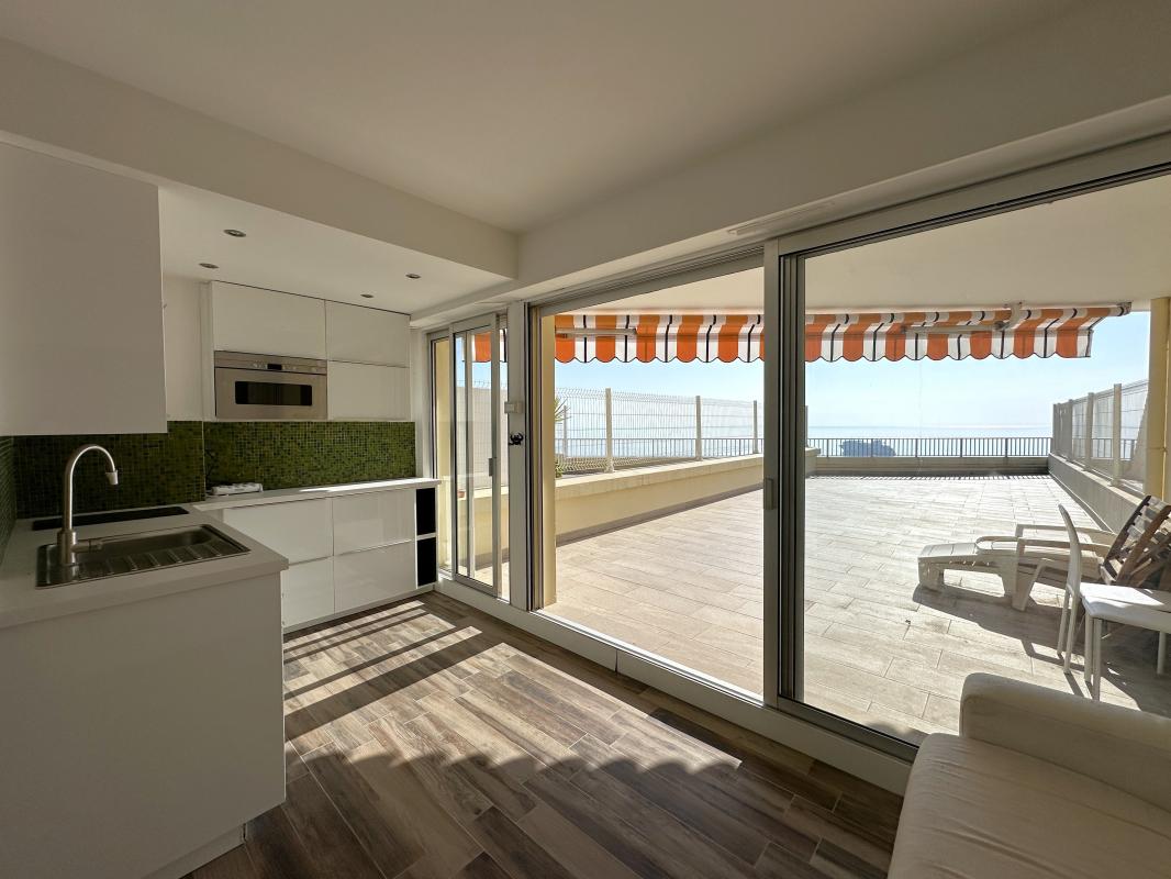 Menton - Perle de Garavan : Studio en parfait état avec terrasse XXLAu cœur du quartier le plus résidentiel de Menton, découvrez ce studio de 23,26 m² Loi Carrez, particulièrement bien entretenu. Véritable belvédère sur la Méditerranée, la pièce de vie lumineuse avec cuisine ouverte s'ouvre sur une terrasse spectaculaire de 66,52 m², offrant un panorama azur imprenable. Ce bien dispose d'une entrée, d'une salle d'eau avec WC indépendant, ainsi que d'une cave et d'un parking privé. Un cadre de vie privilégié.