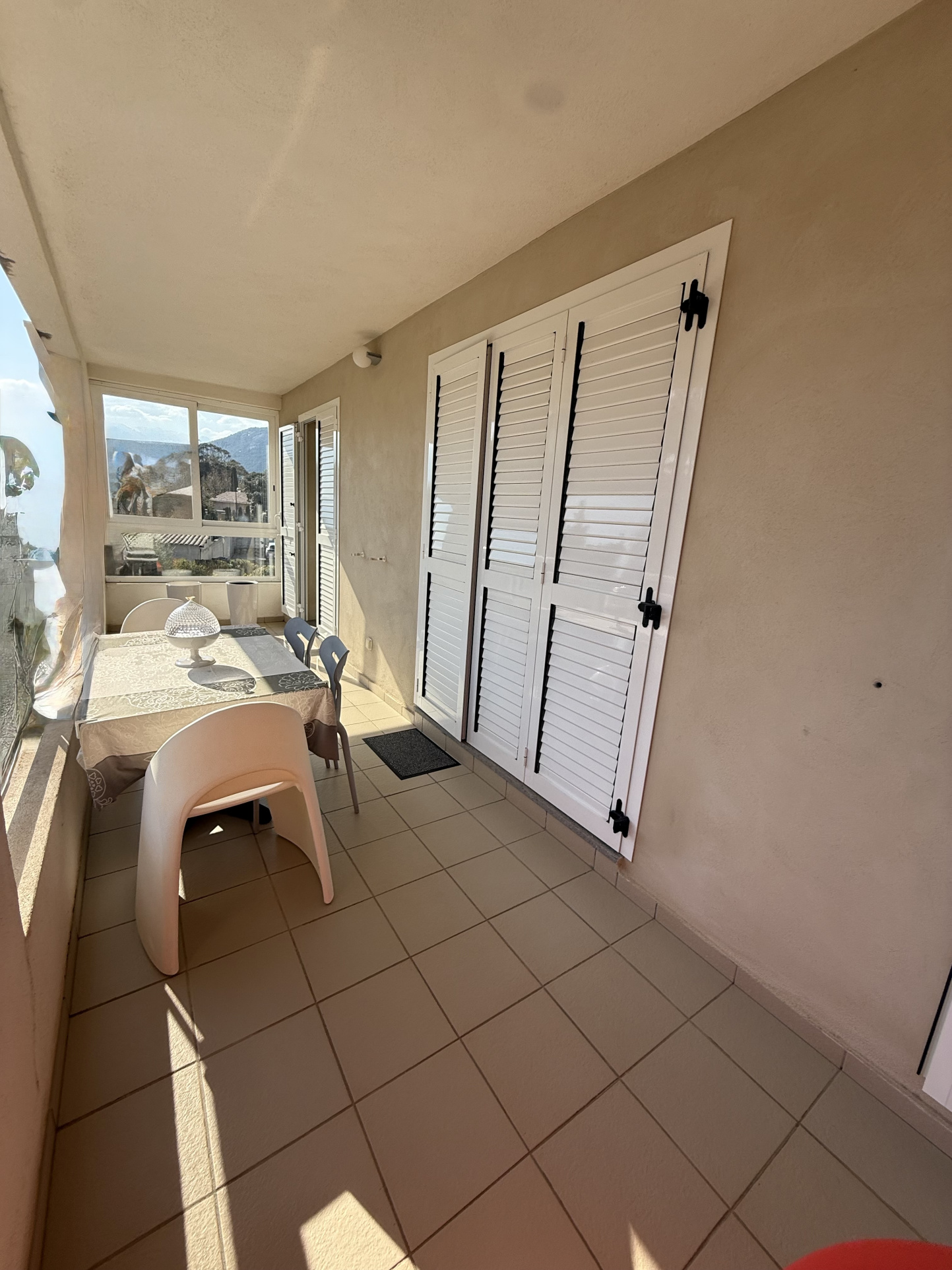 Il se compose d'une entrée avec terrasse et placard, une cuisine séparée et équipée (possiblité de l'ouvrir facilement sur le séjour), séjour donnant sur la grande terrasse couverte de 18 m2 avec aperçu sur la citadelle.
