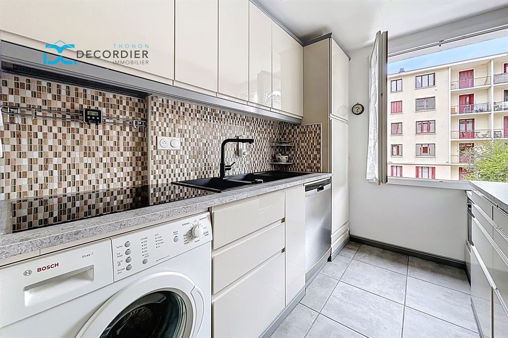 À vendre au centre-ville de Thonon, dans une résidence proche de tous les commerces et commodités, votre futur appartement avec climatisation. Découvrez ce T5 au 1er étage de 73.5m2. Il dispose d'une cuisine équipée neuve, d'un séjour donnant sur un balcon orienté Ouest, de quatre chambres, d'une salle d'eau, d'un WC indépendant et d'une loggia. Facilement modifiable, très agréable à vivre, cet appartement nécessite un rafraichissement afin de le mettre à votre convenance. Une grande cave complète ce bien.Un garage en rez-de-chaussée peut s'ajouter à la vente de ce bien.
